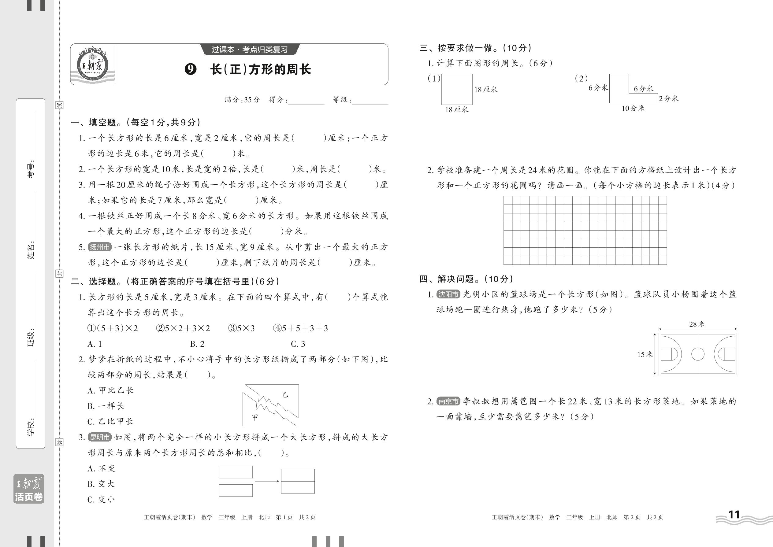 2023上册三年级数学北师版 9 长(正)方形的周长