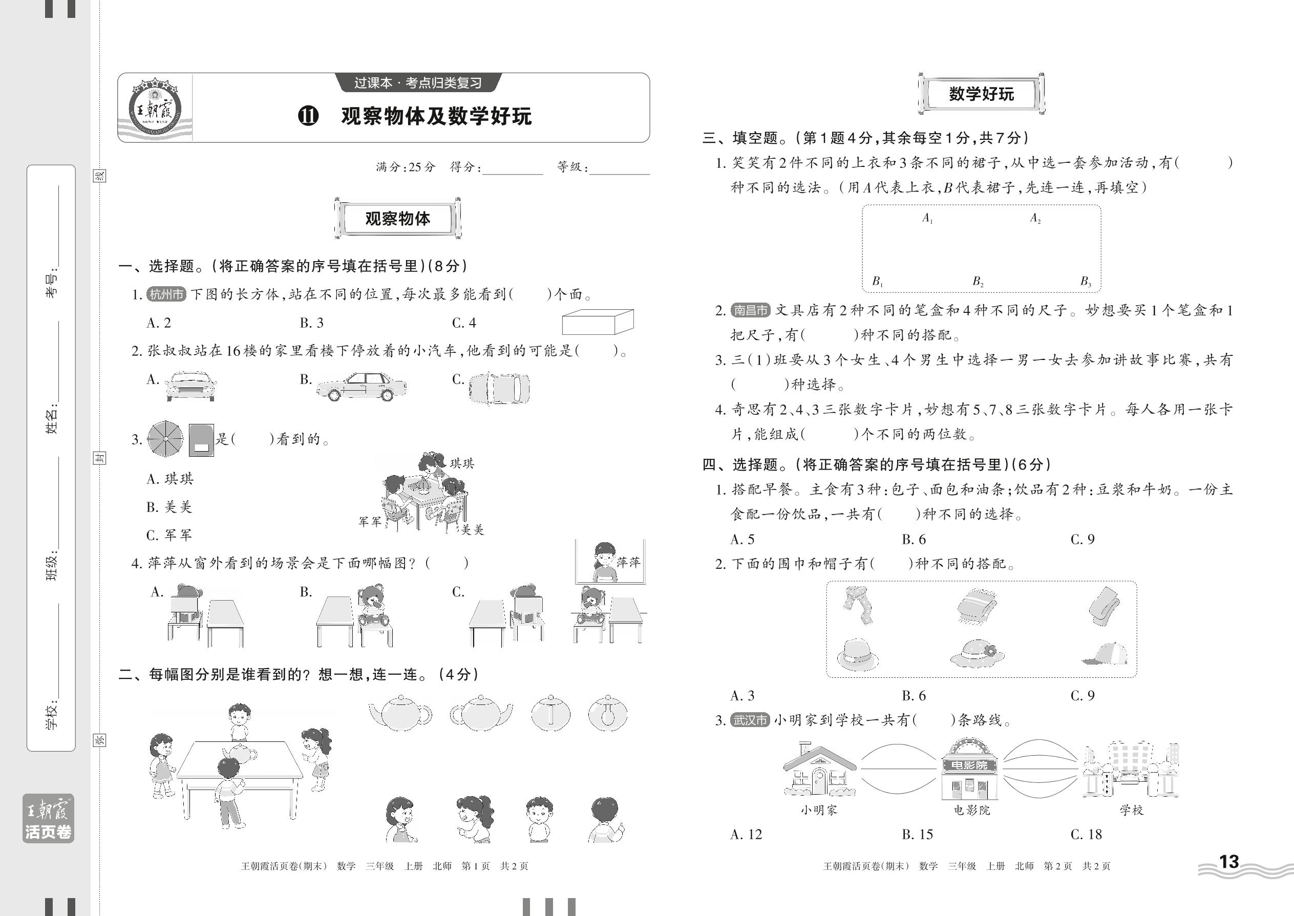 2023上册三年级数学北师版 11 观察物体及数学好玩