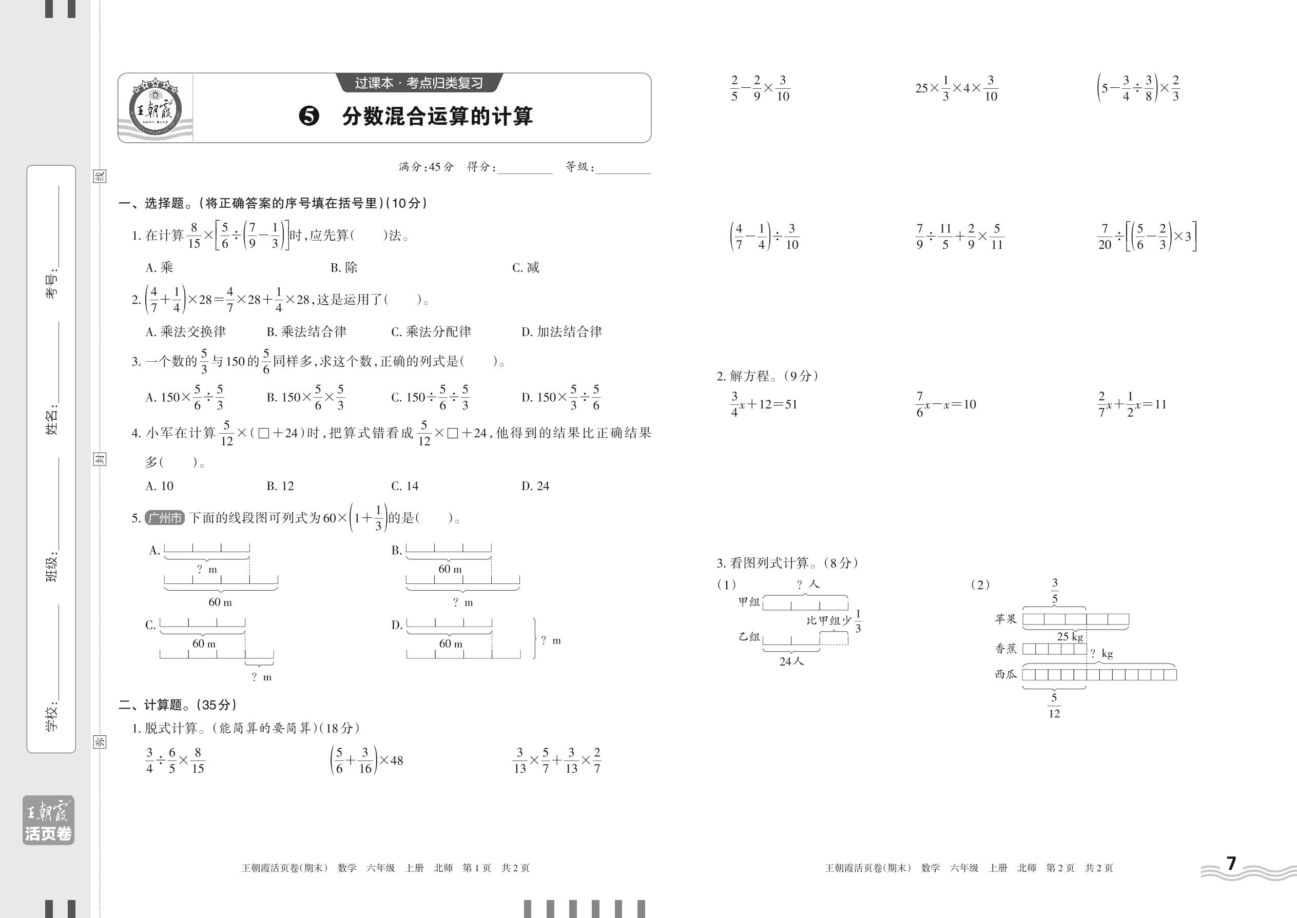 2023上册六年级数学北师版 5 分数混合运算的计算