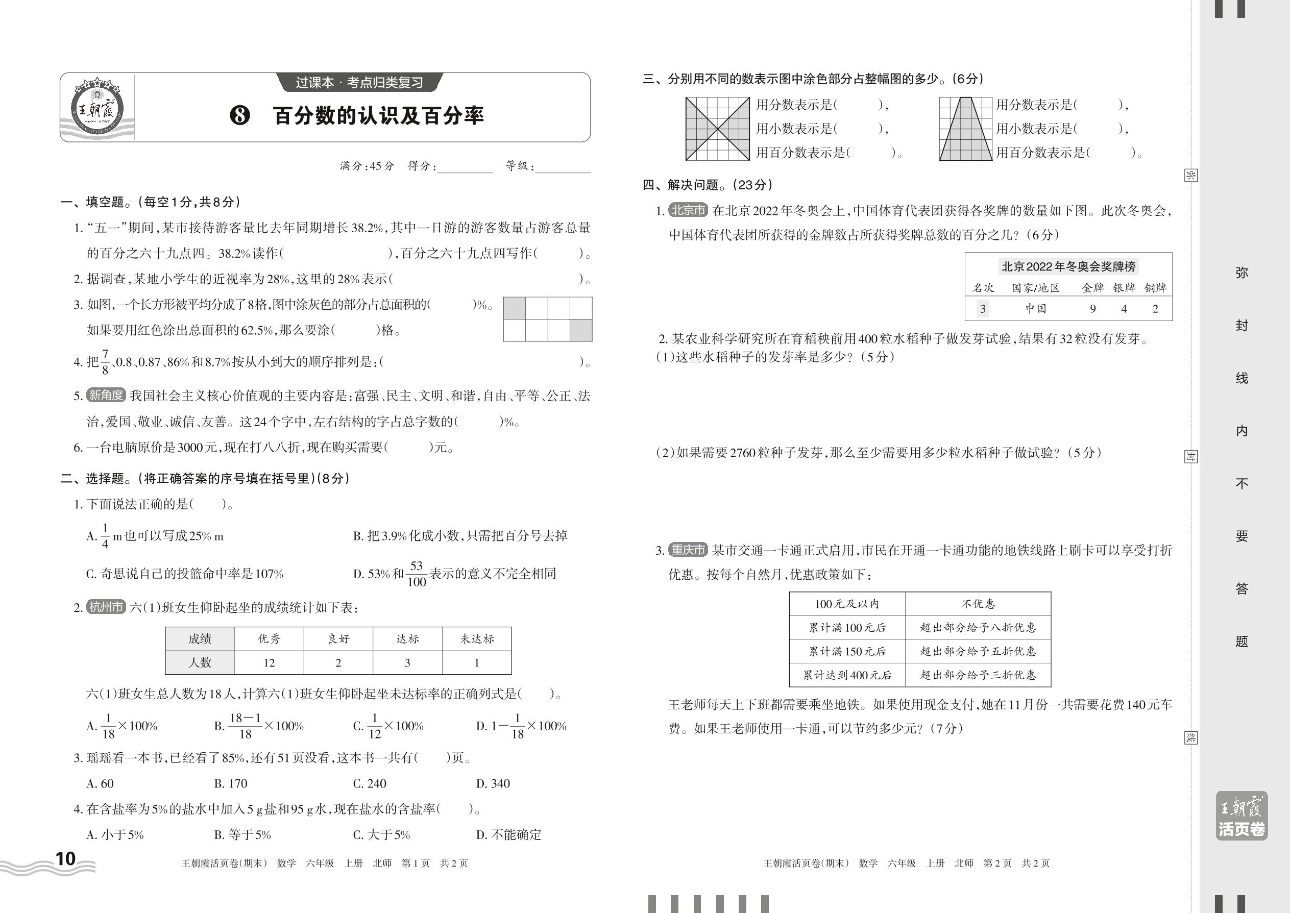 2023上册六年级数学北师版 8 百分数的认识及百分率