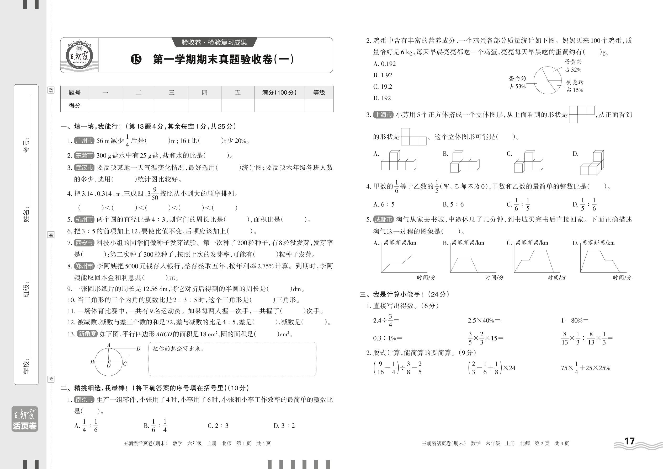 2023上册六年级数学北师版 15 第一学期期末真题验收卷(一)
