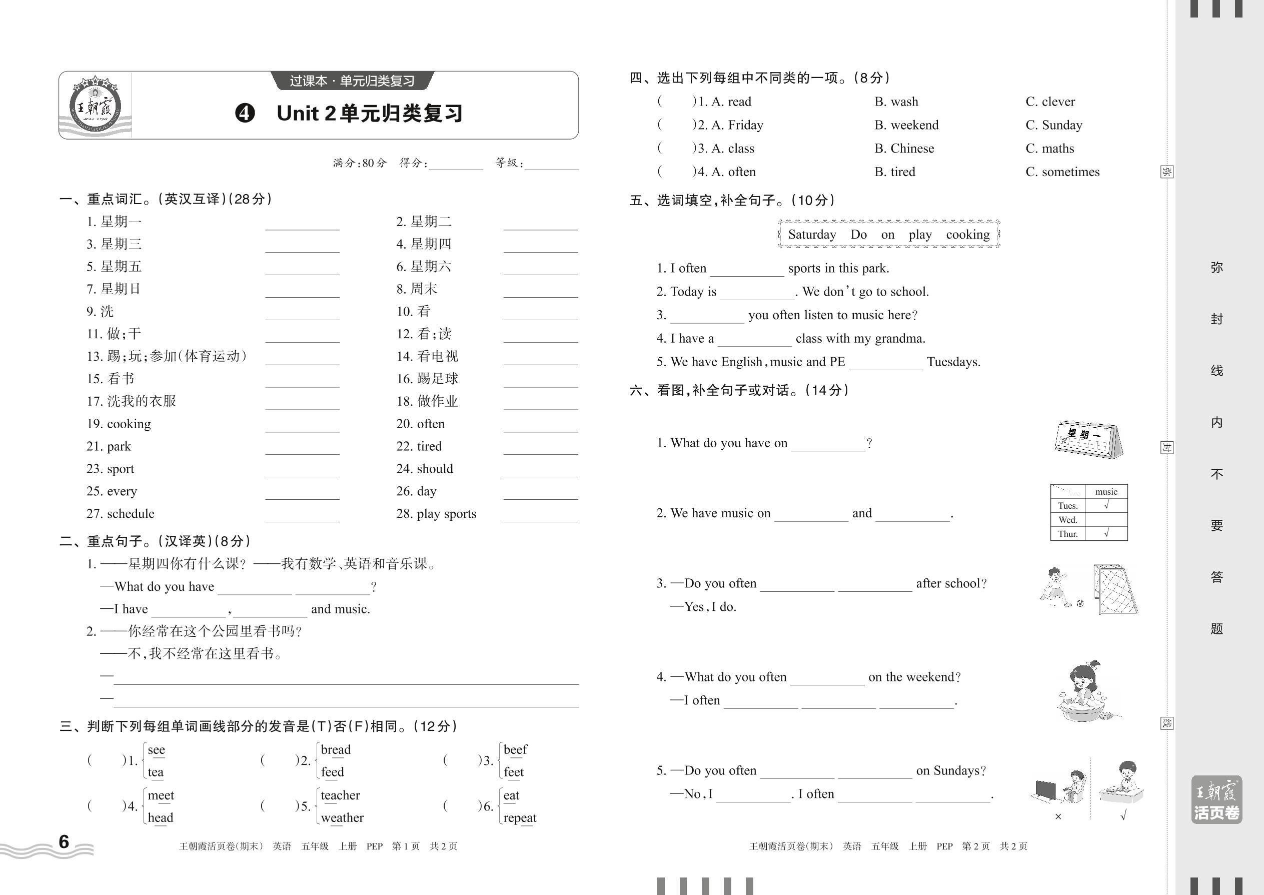 2023上册五年级英语人教PEP版 4 Unit 2单元归类复习