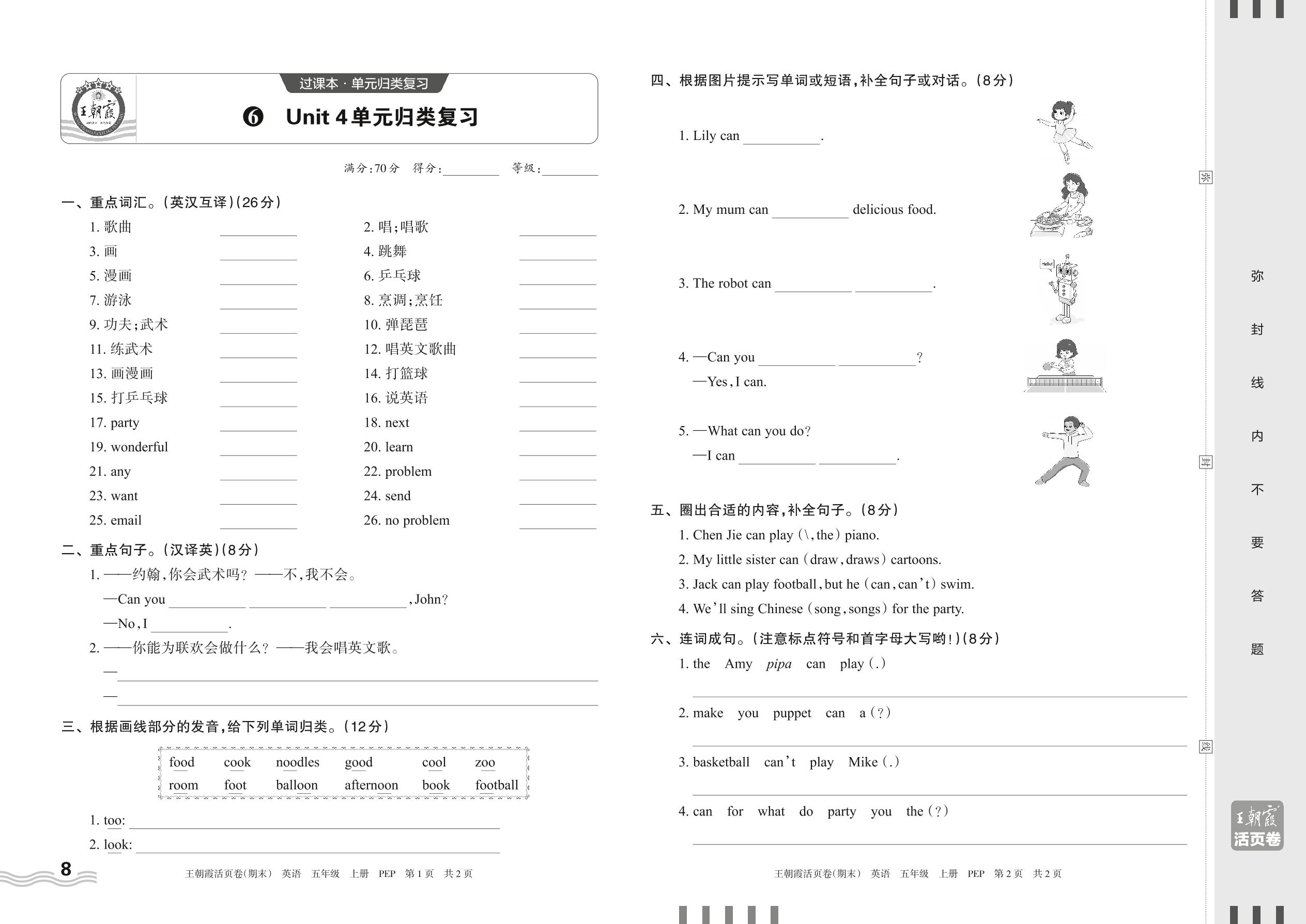 2023上册五年级英语人教PEP版 6 Unit 4单元归类复习