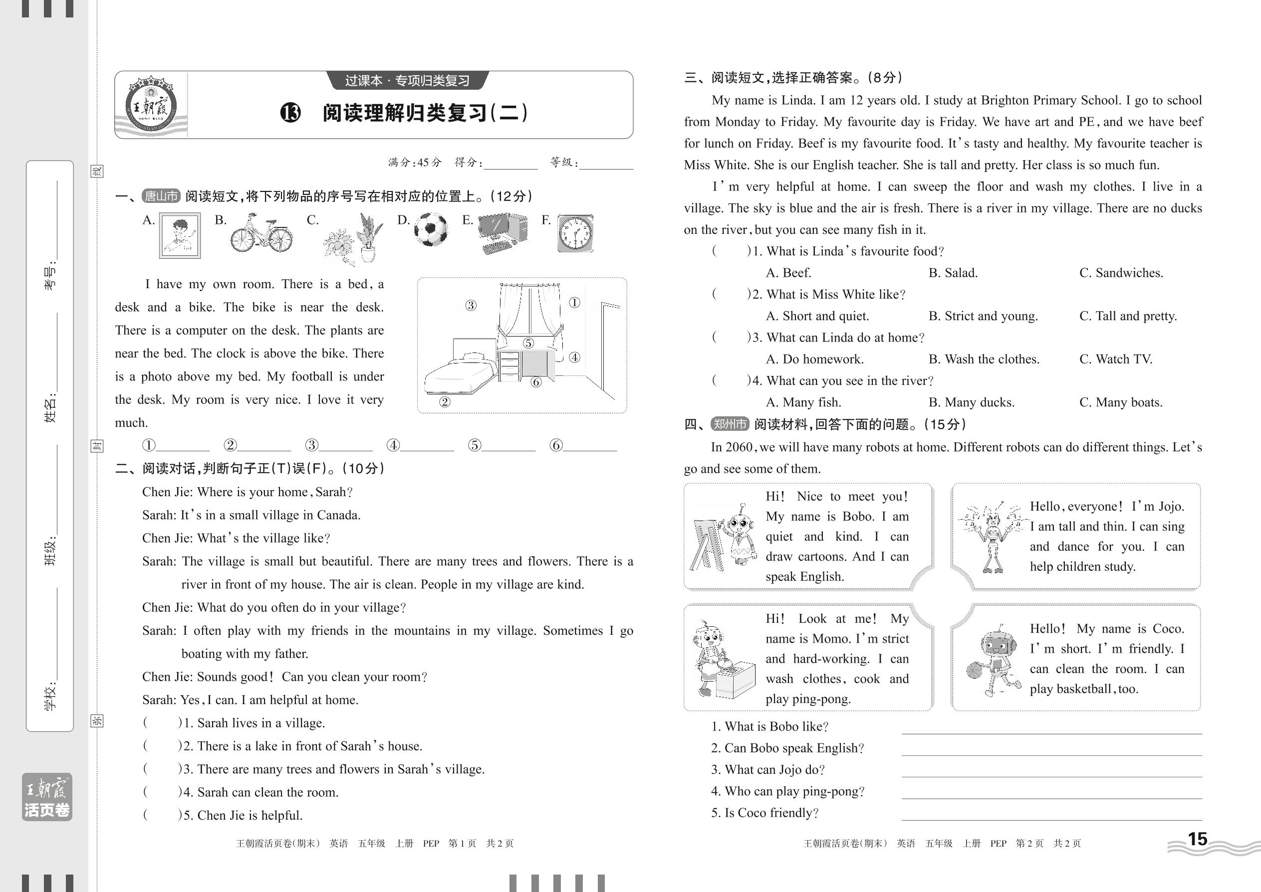 2023上册五年级英语人教PEP版 13 阅读理解归类复习(二)