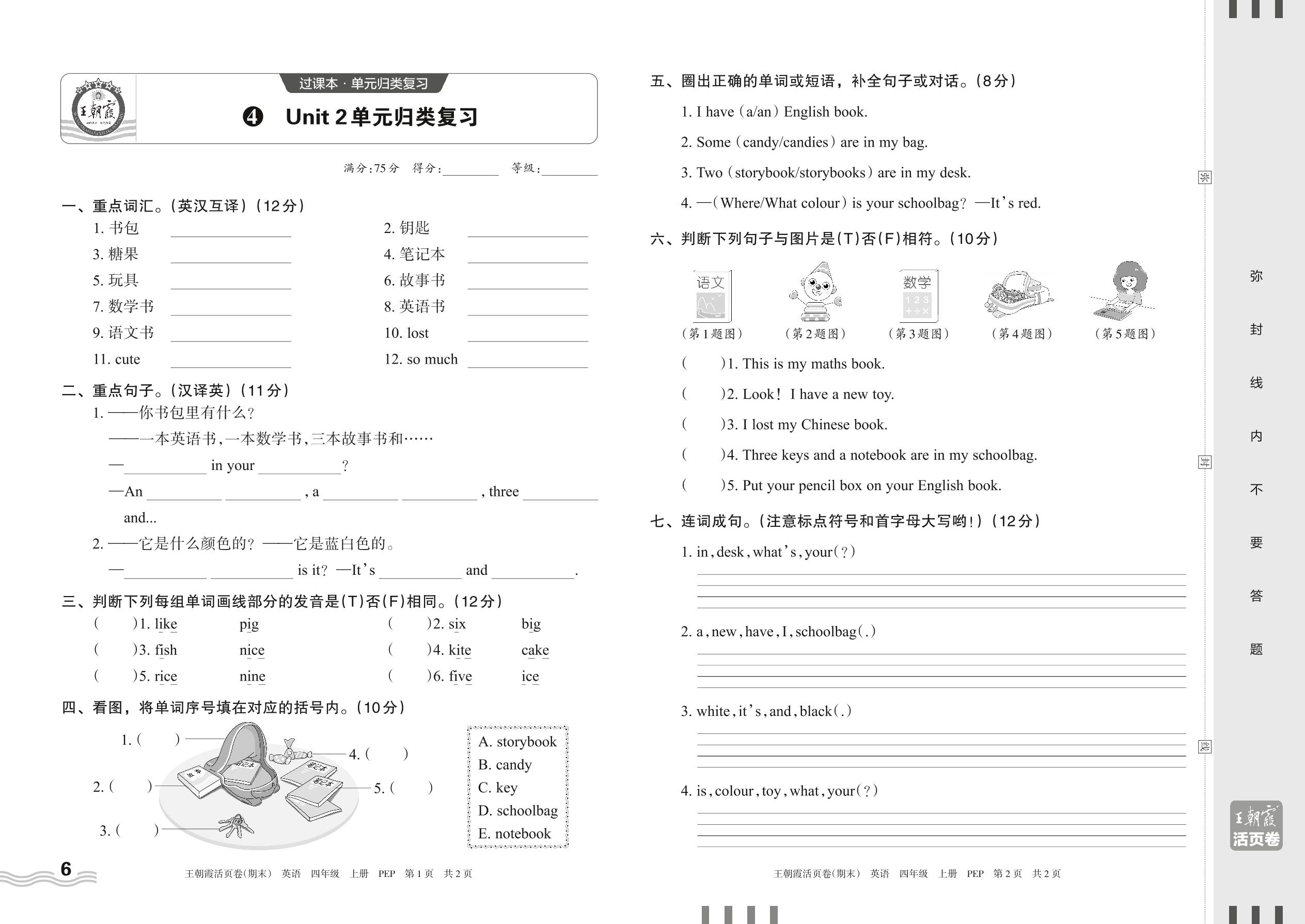 2023上册四年级英语人教PEP版 4 Unit 2单元归类复习
