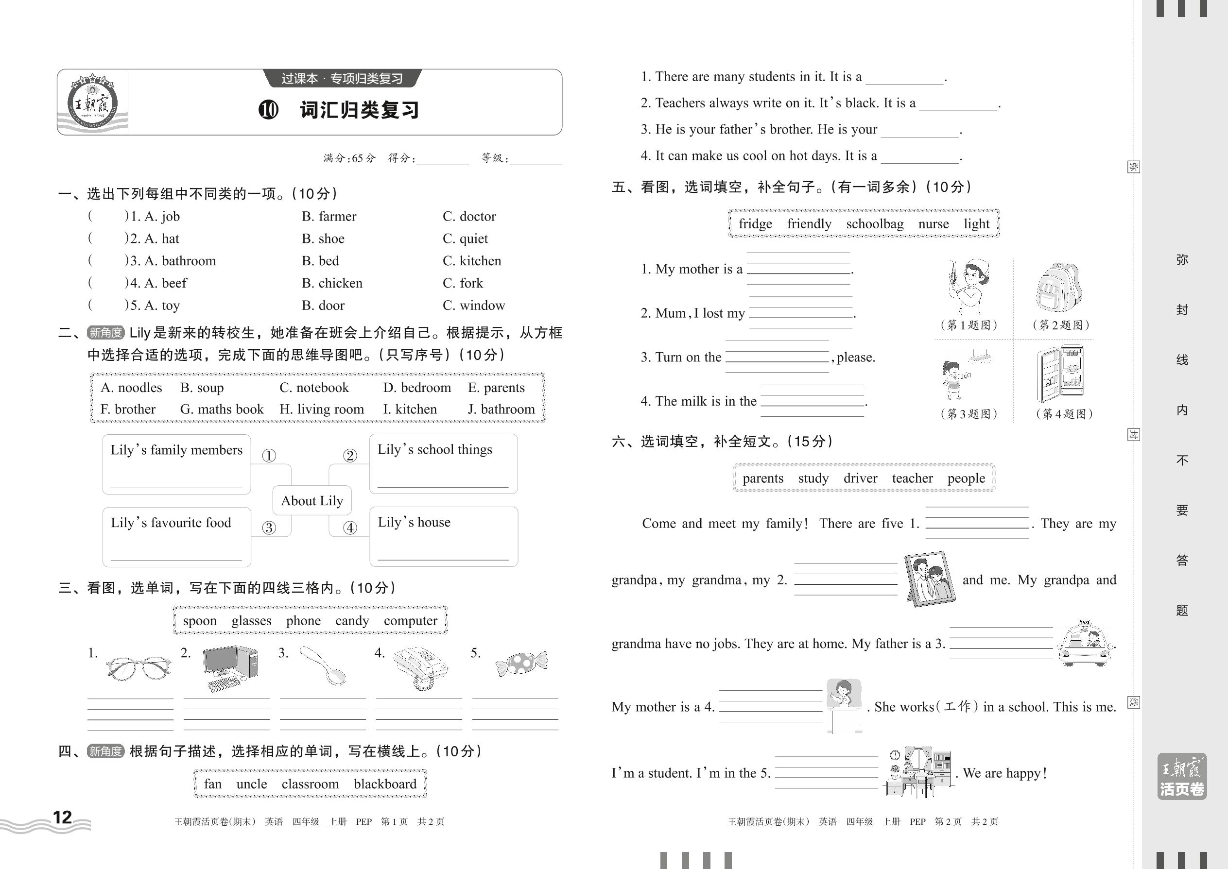 2023上册四年级英语人教PEP版 10 词汇归类复习