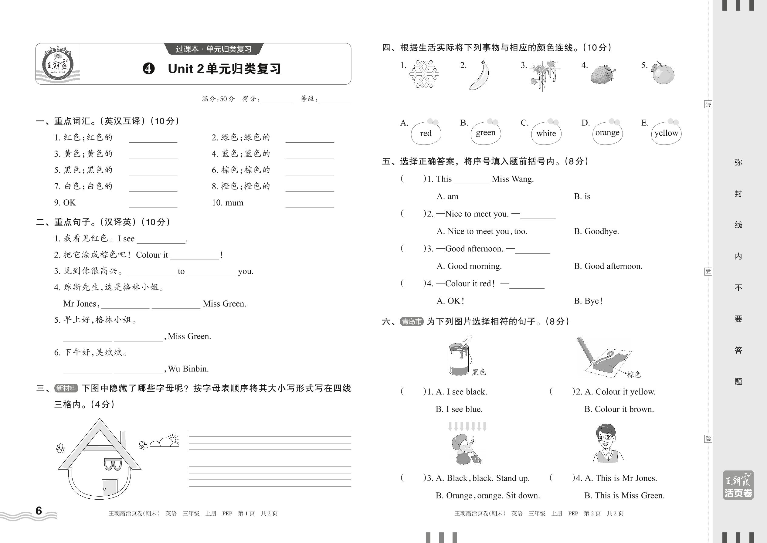 2023上册三年级英语人教PEP版 4 Unit 2单元归类复习