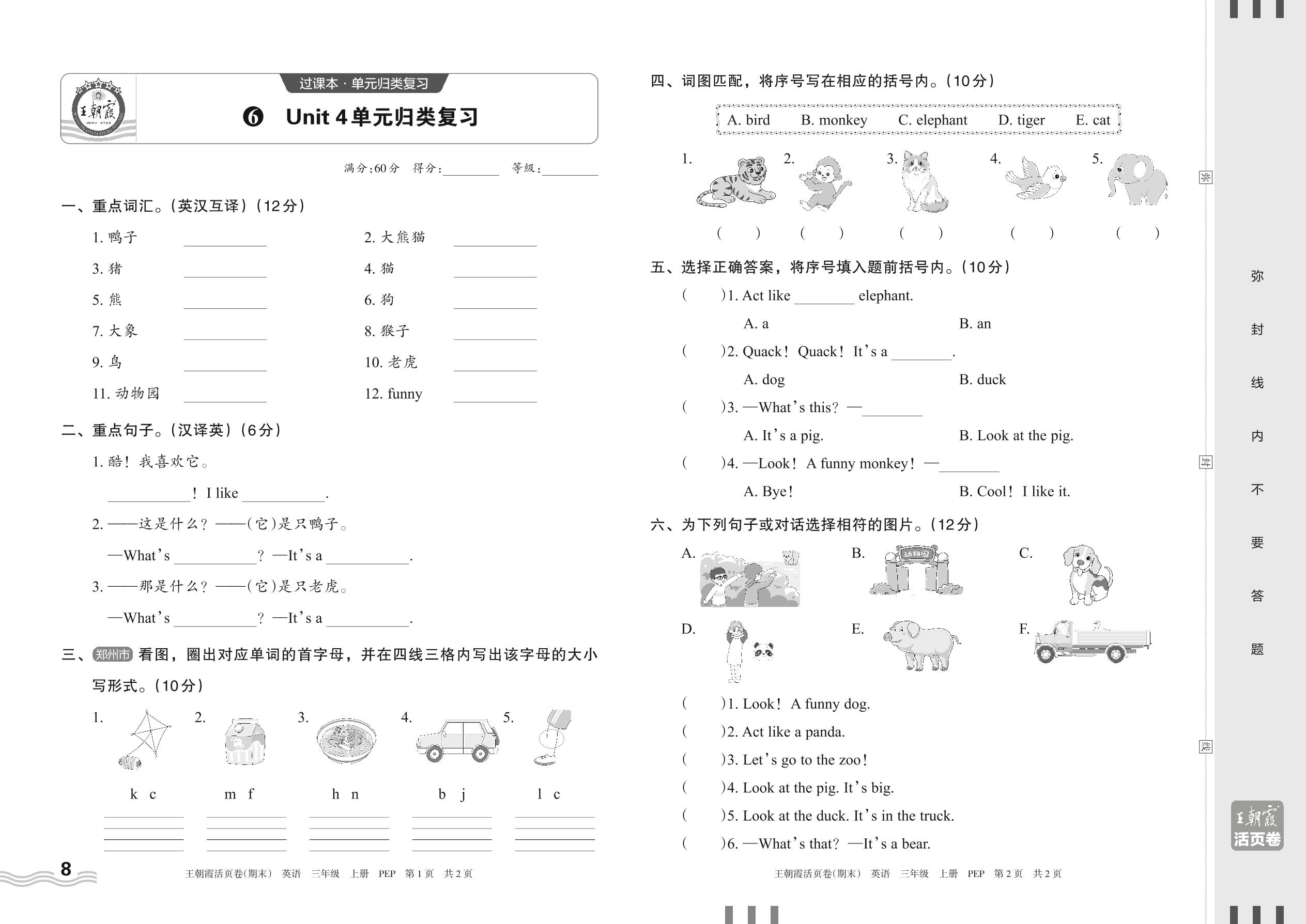 2023上册三年级英语人教PEP版 6 Unit 4单元归类复习