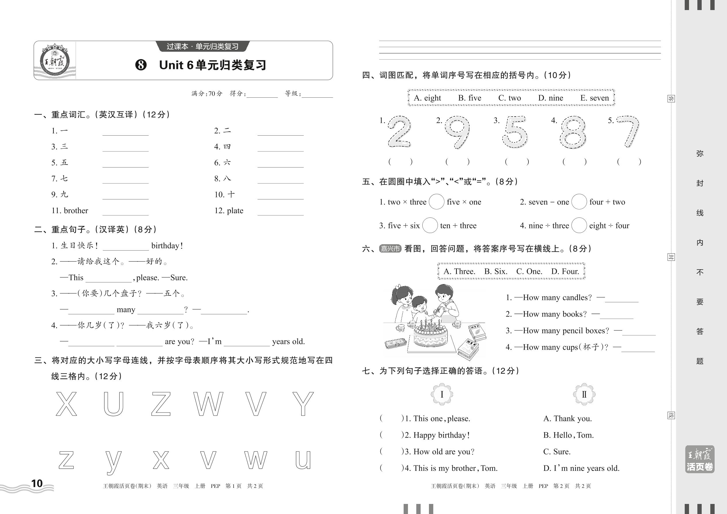 2023上册三年级英语人教PEP版 8 Unit 6单元归类复习