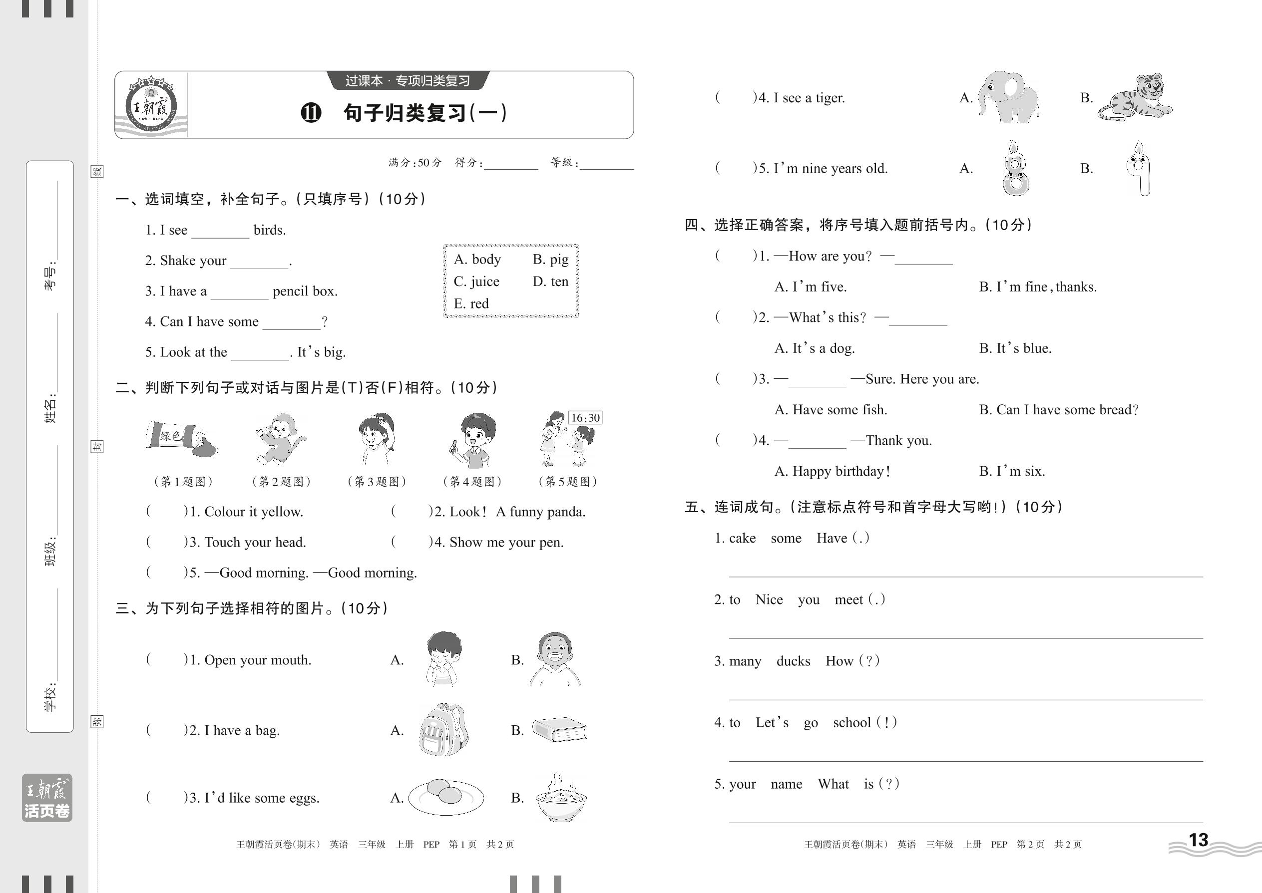2023上册三年级英语人教PEP版 11 句子归类复习(一)