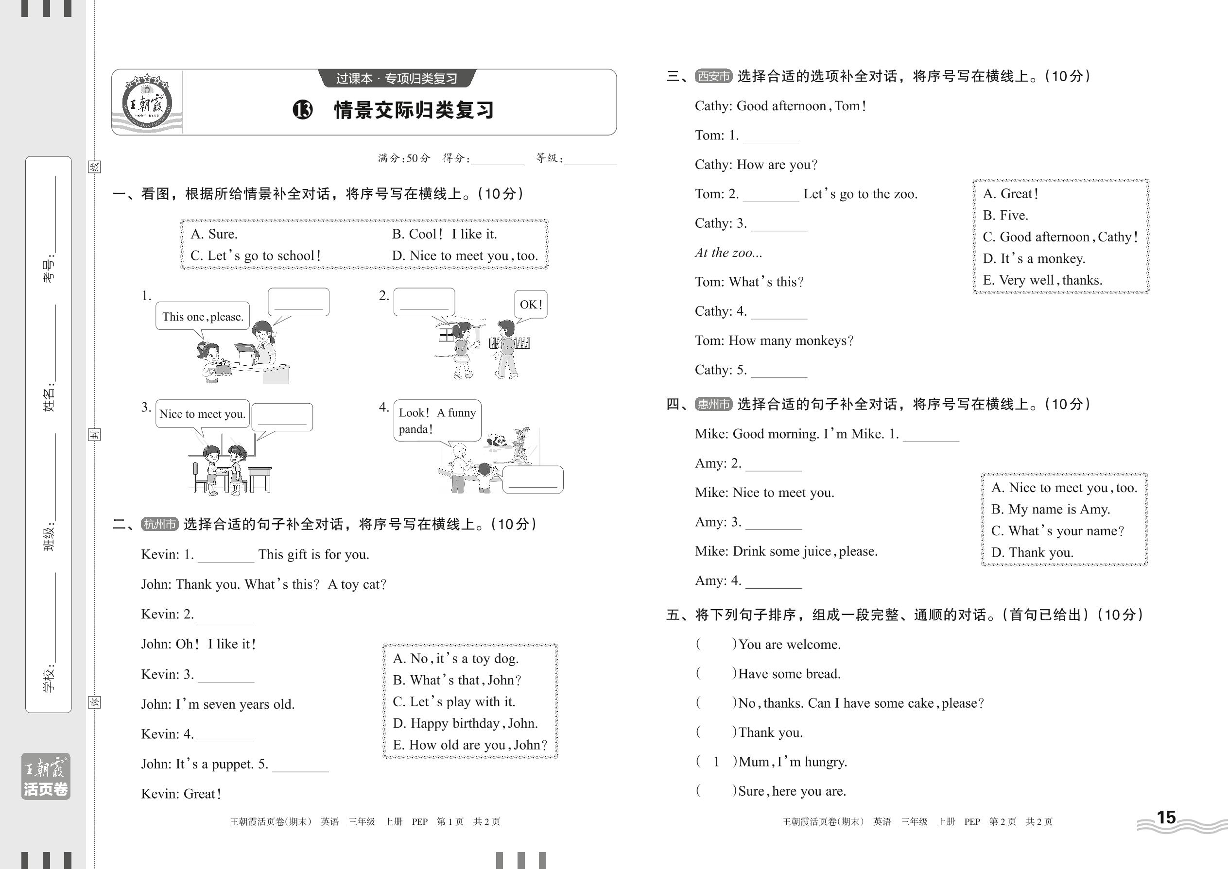 2023上册三年级英语人教PEP版 13 情景交际归类复习