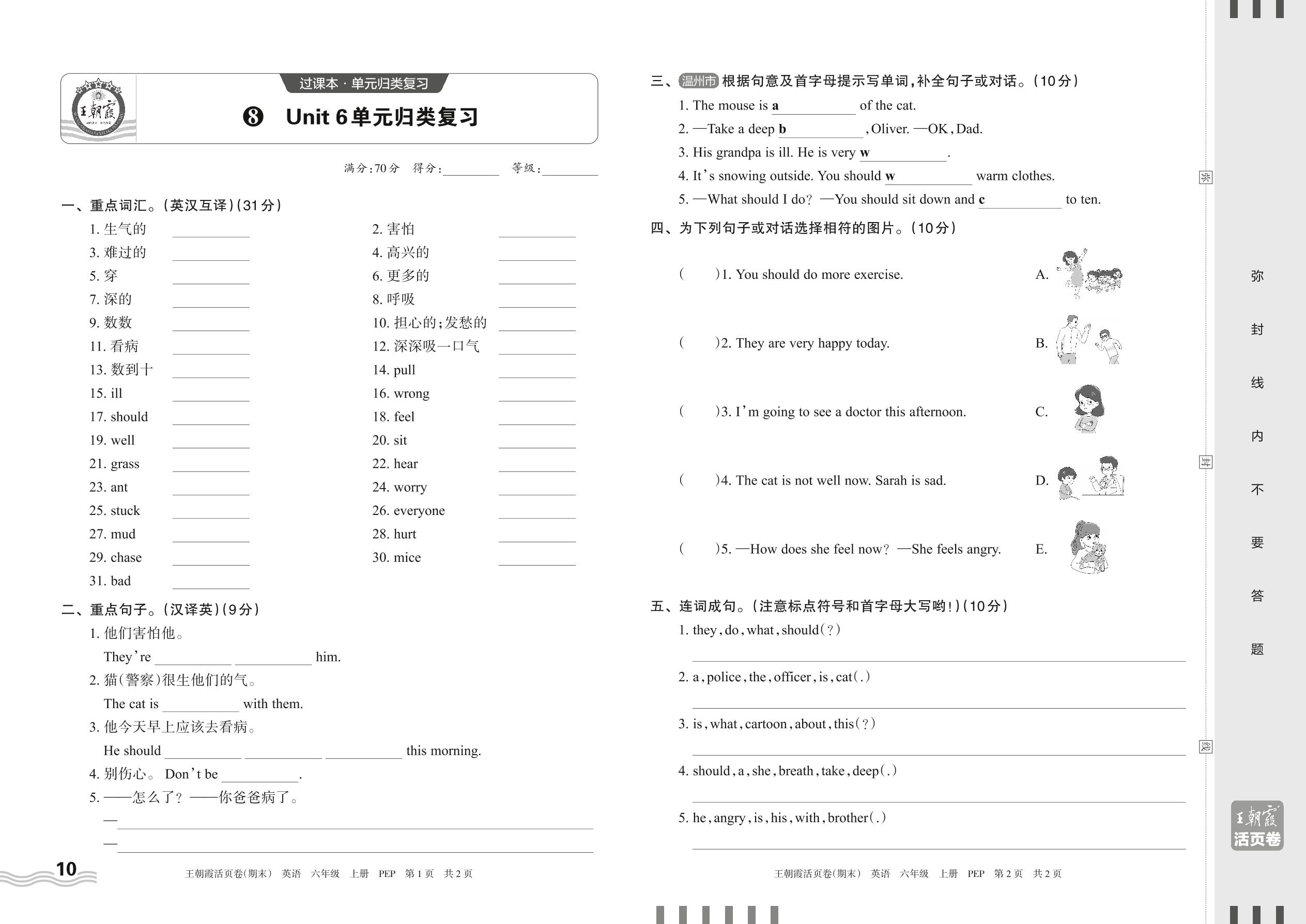 2023上册六年级英语人教PEP版 8 Unit 6单元归类复习