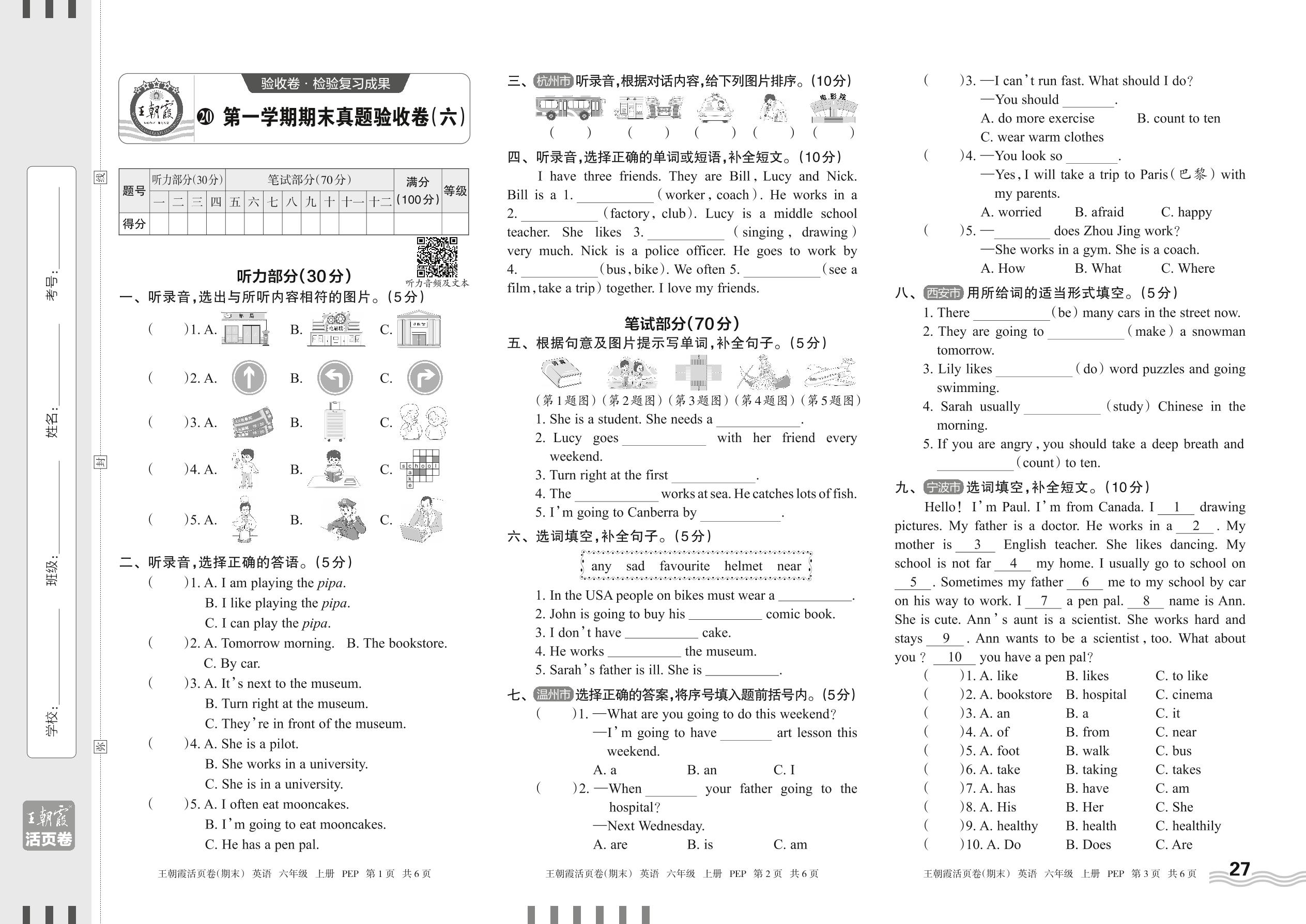 2023上册六年级英语人教PEP版 20 第一学期期末真题验收卷(六)