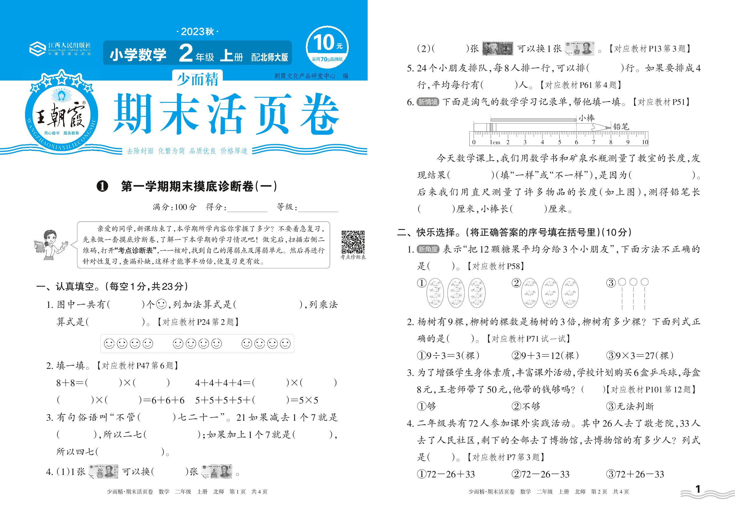 2023上册二年级数学北师版 1 第一学期期末摸底诊断卷(一)