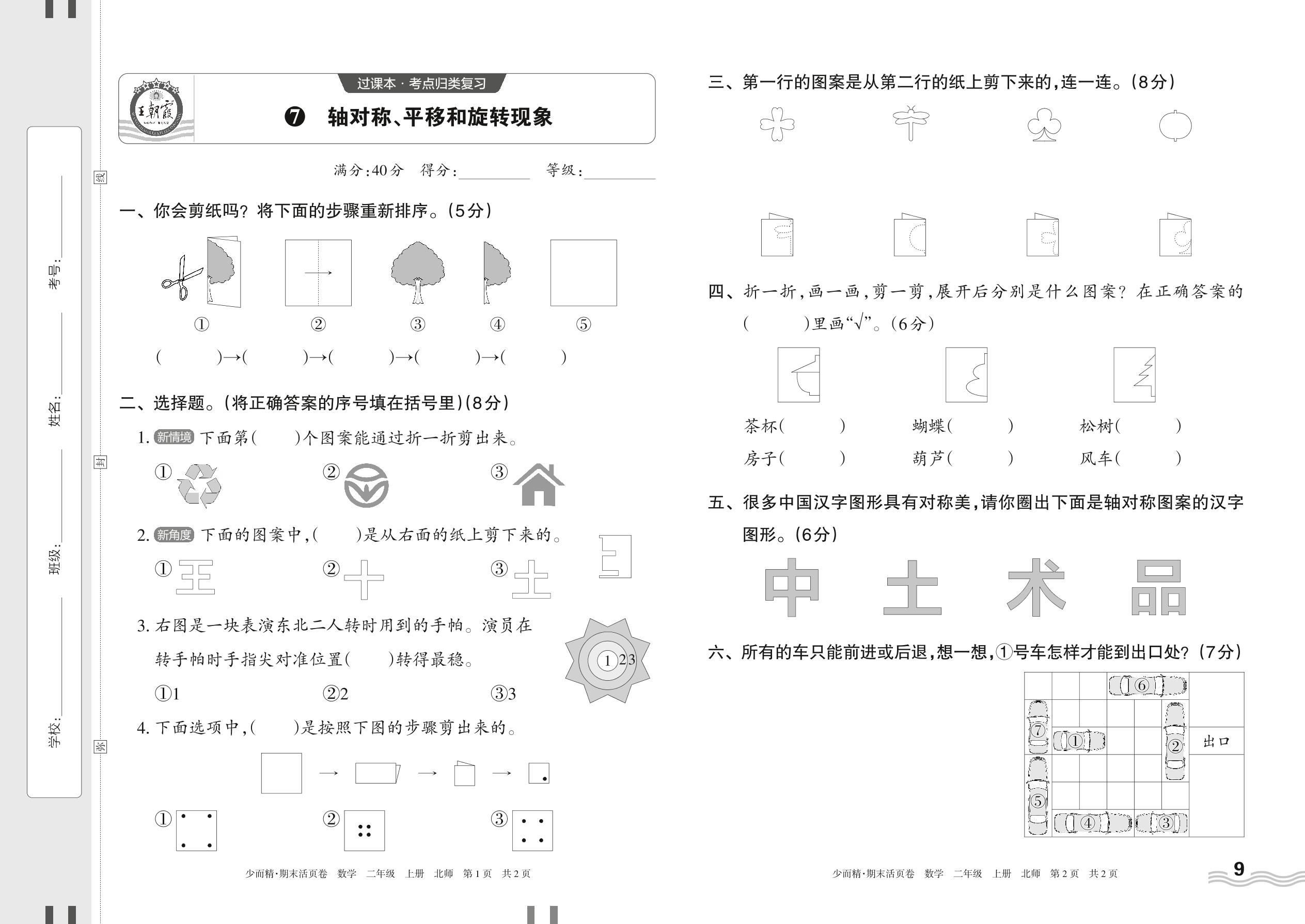 2023上册二年级数学北师版 7 轴对称、平移和旋转现象