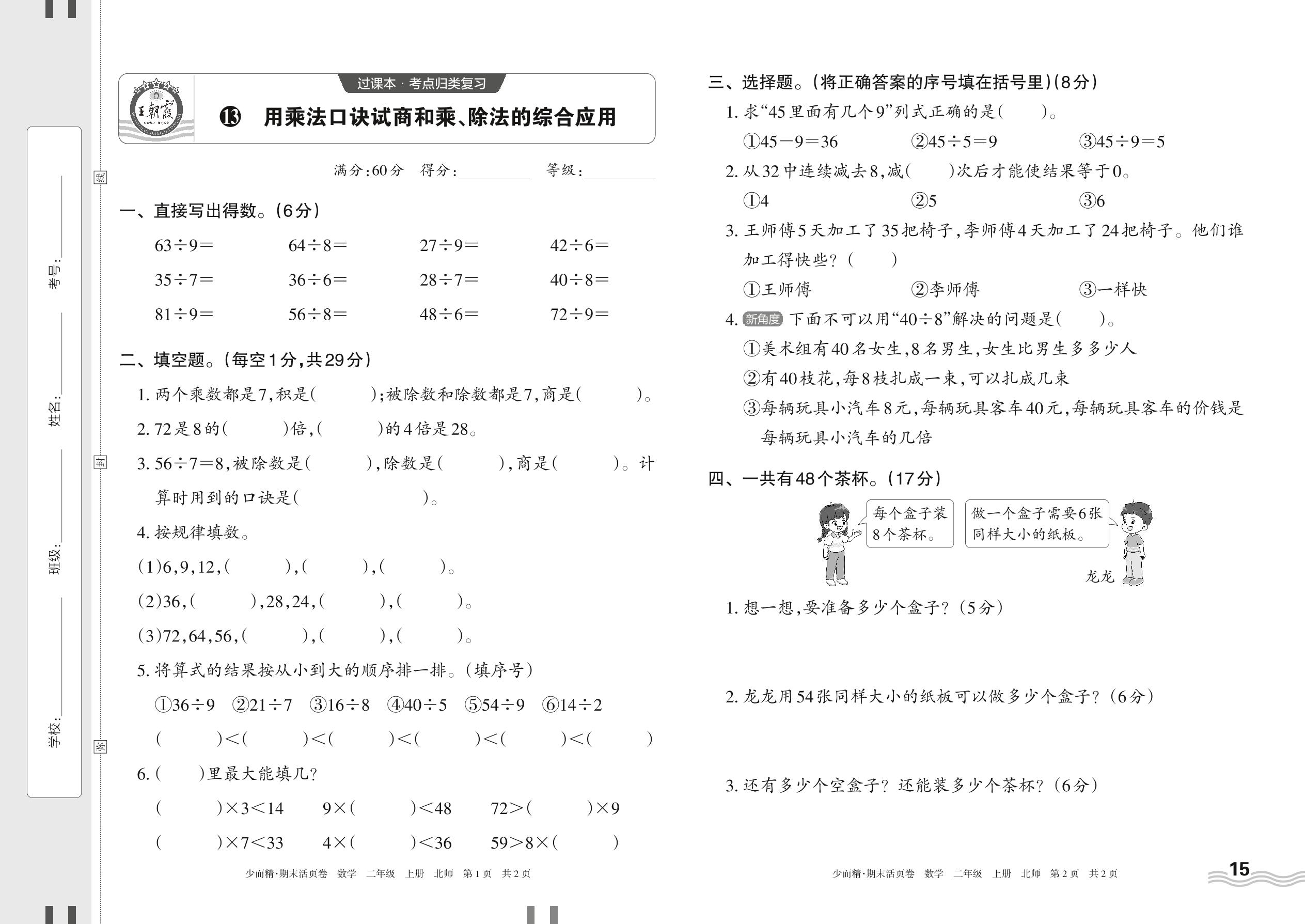 2023上册二年级数学北师版 13 用乘法口诀试商和乘、除法的综合应用