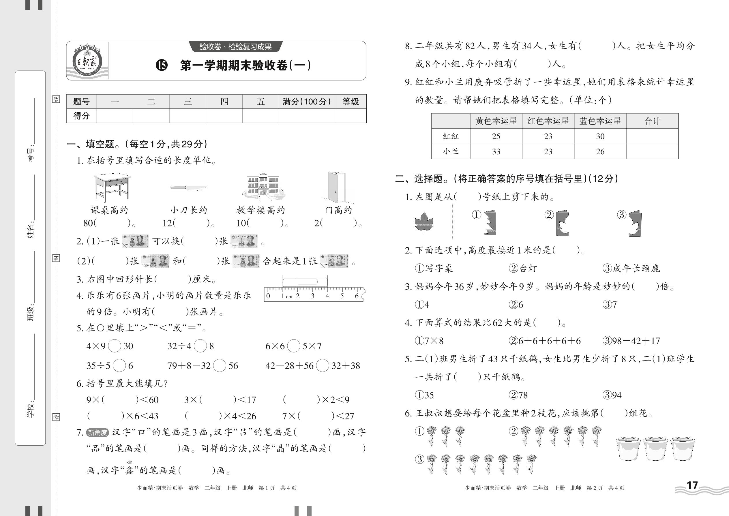 2023上册二年级数学北师版 15 第一学期期末验收卷(一)