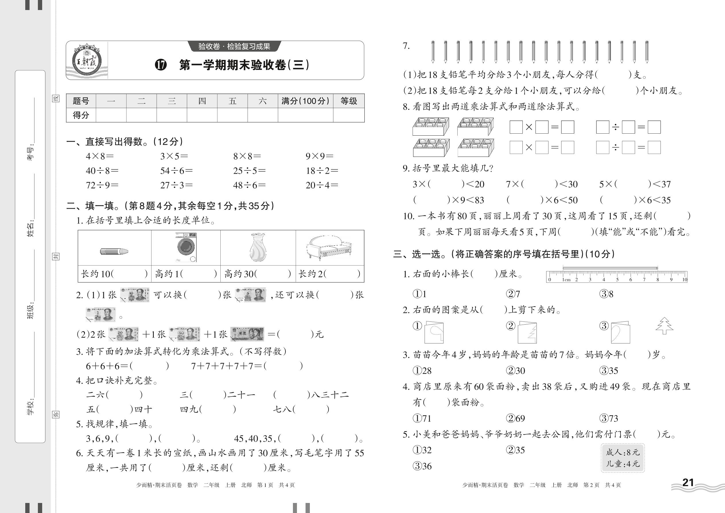 2023上册二年级数学北师版 17 第一学期期末验收卷(三)