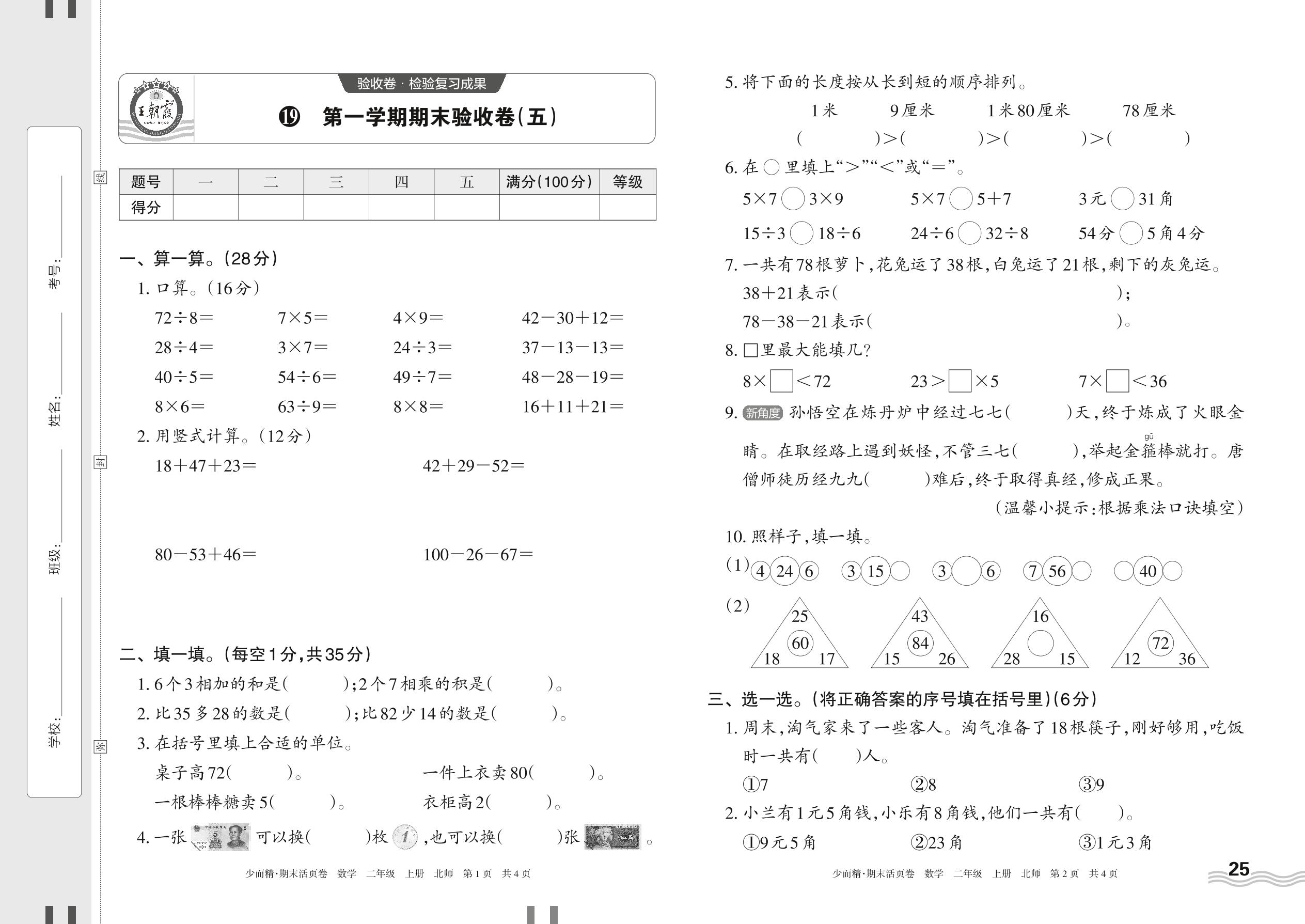 2023上册二年级数学北师版 19 第一学期期末验收卷(五)