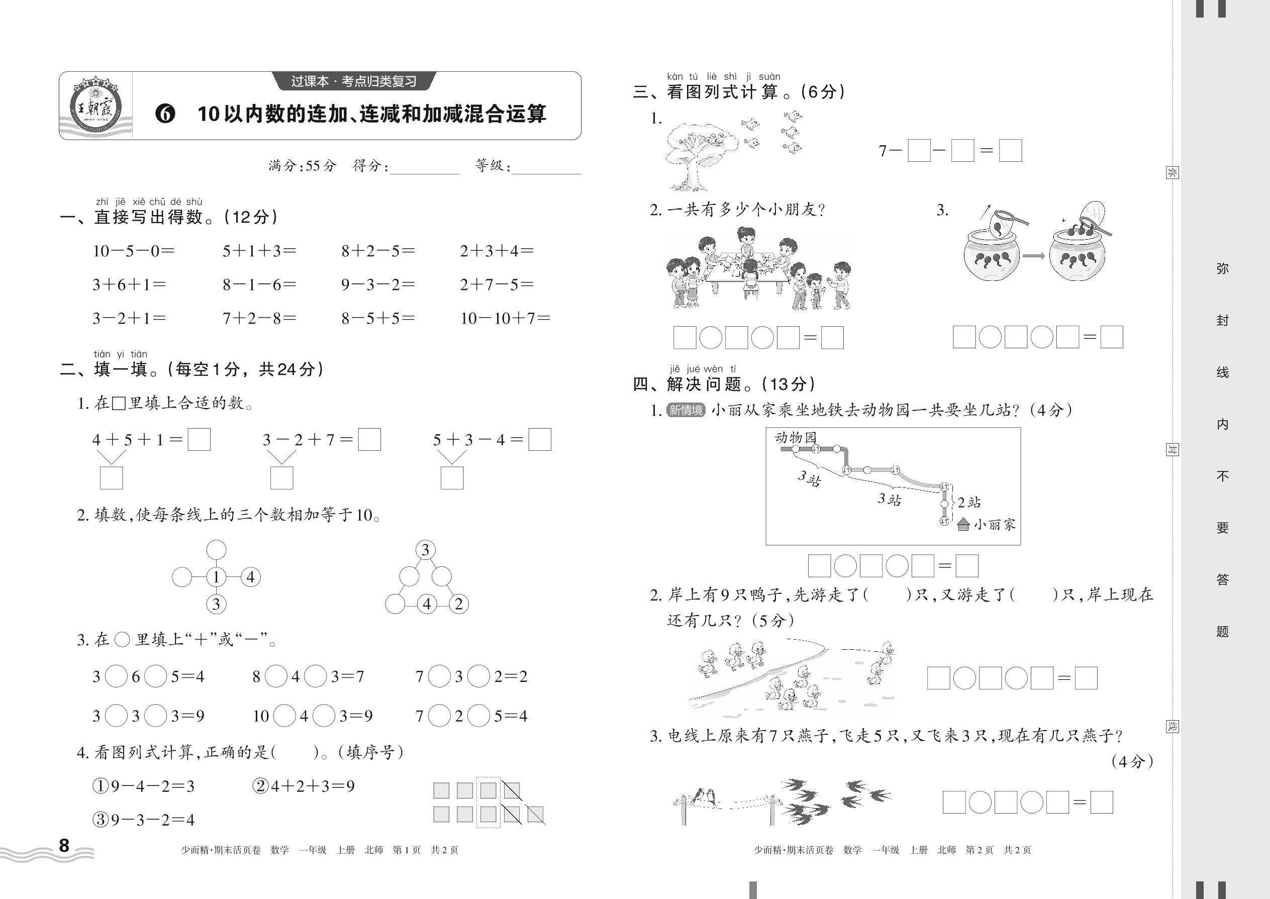 2023上册一年级数学北师版 6 10以内数的连加、连减和加减混合运算