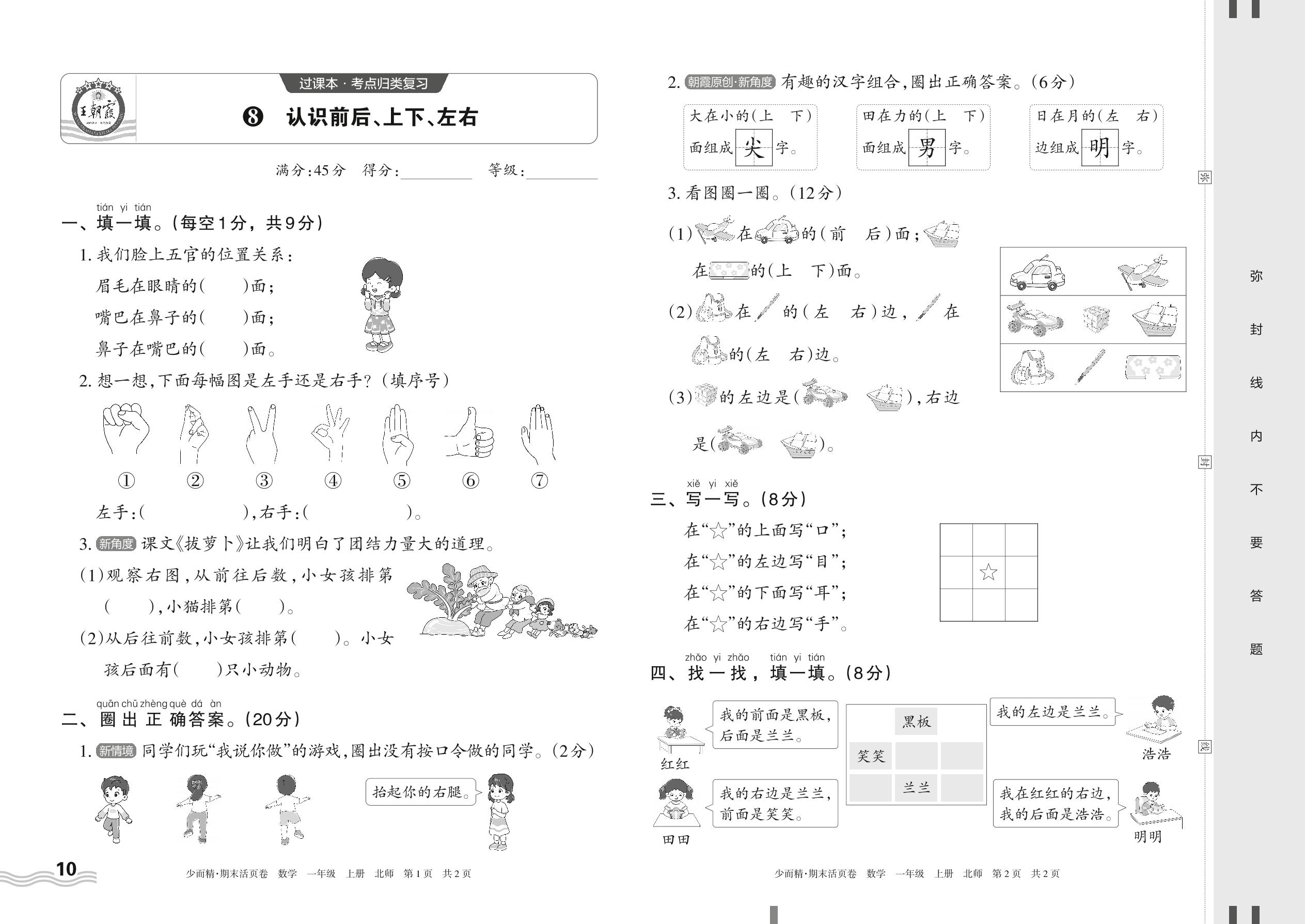 2023上册一年级数学北师版 8 认识前后、上下、左右