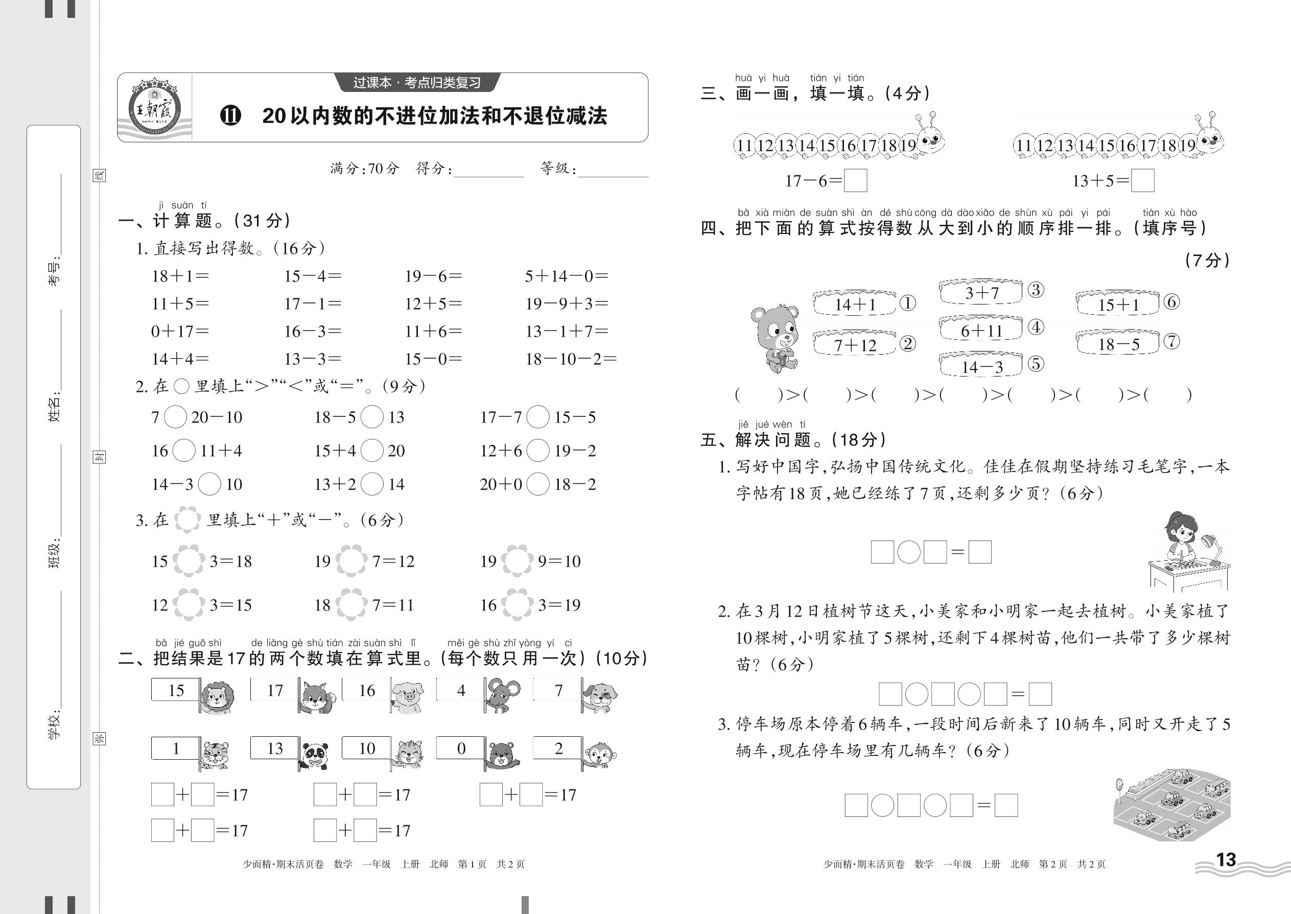 2023上册一年级数学北师版 11 20以内数的不进位加法和不退位减法