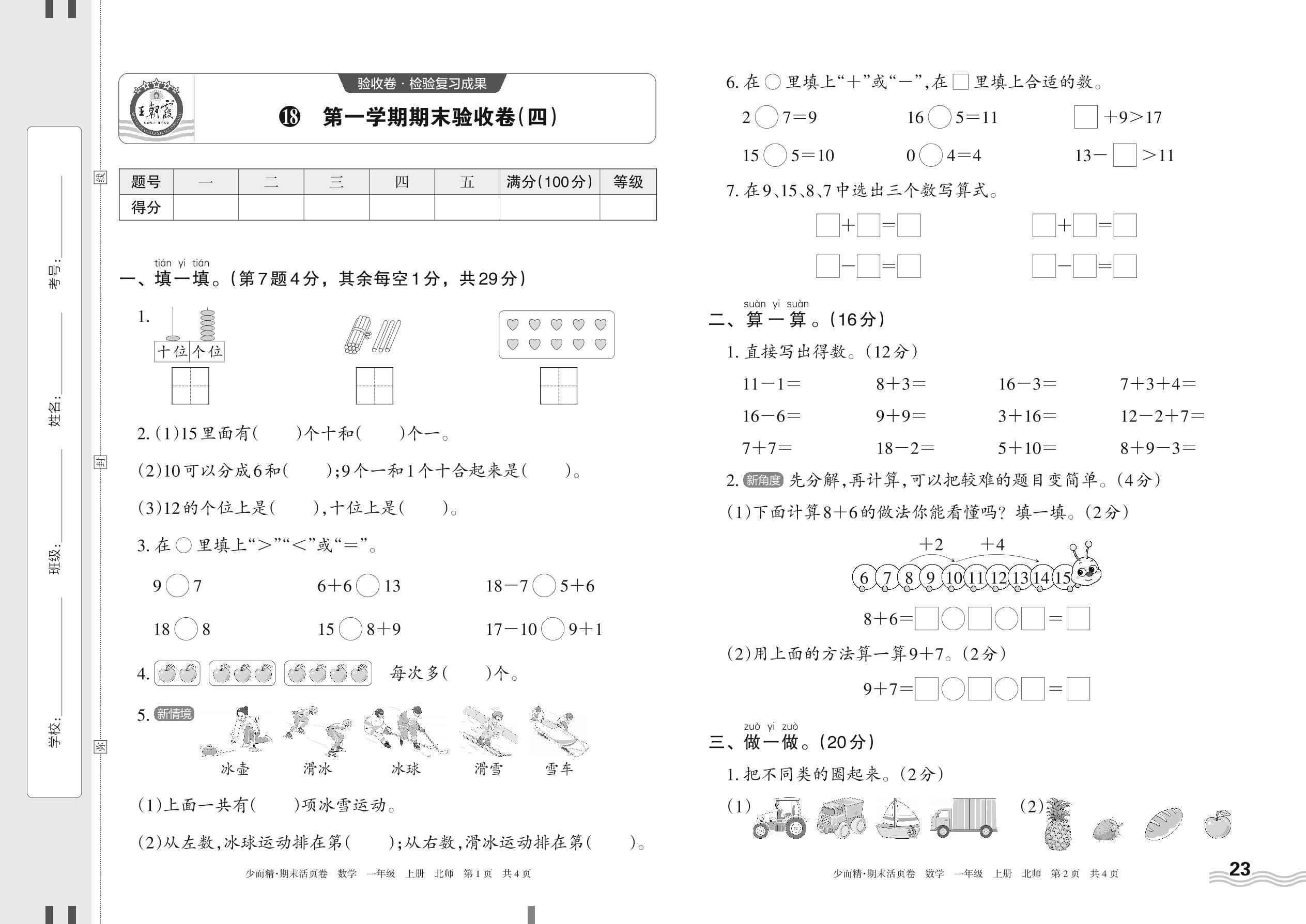 2023上册一年级数学北师版 18 第一学期期末验收卷(四)