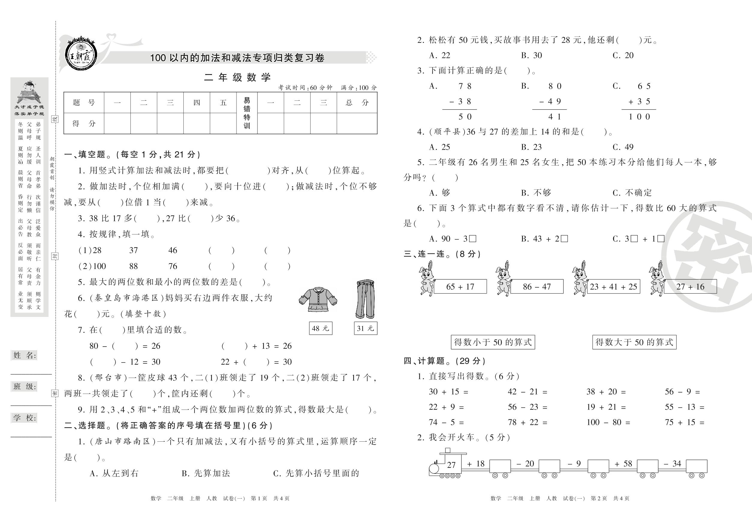 王朝霞期末专项卷二年级上册数学(人教版)_R210803102008【1】