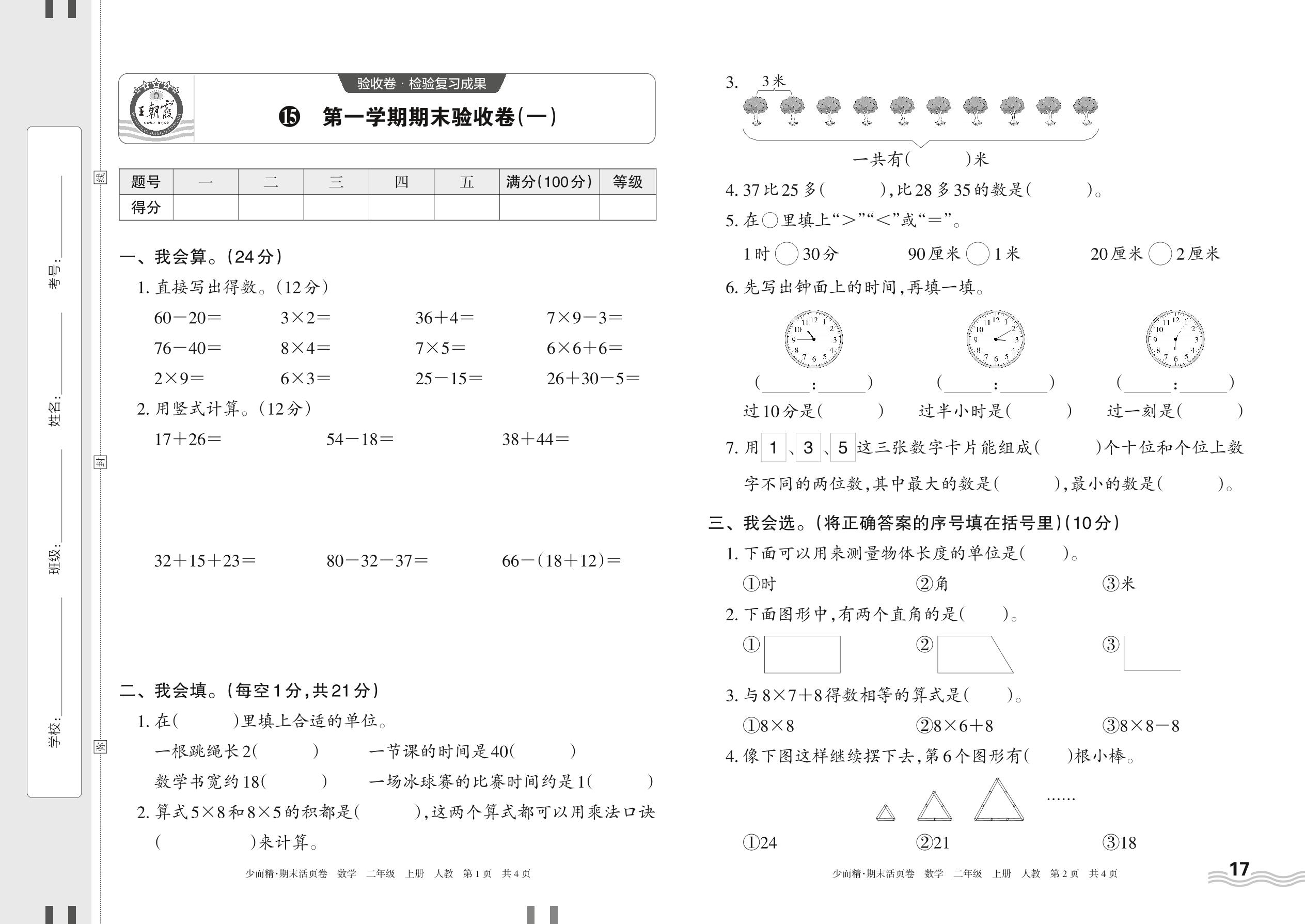 2023上册二年级数学人教版 15 第一学期期末验收卷(一)