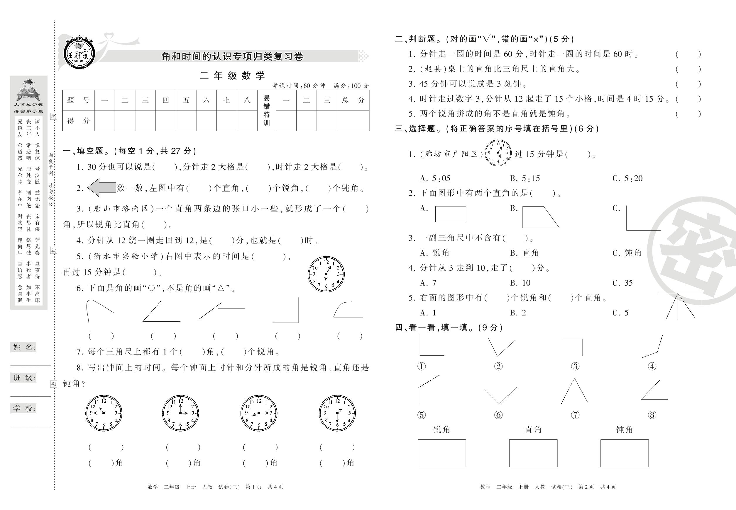 王朝霞期末专项卷二年级上册数学(人教版)_R210803102017【3】