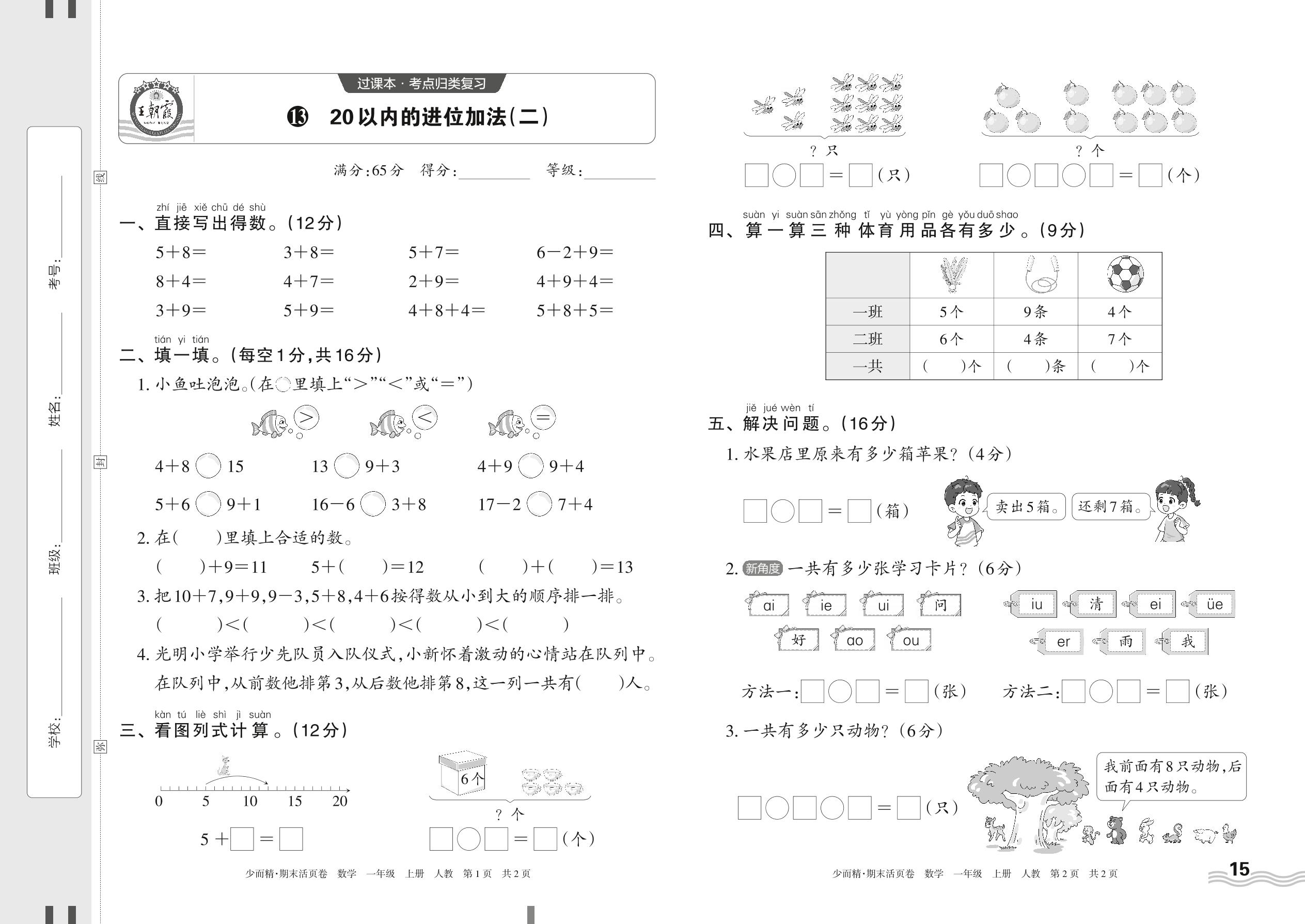 2023上册一年级数学人教版 13 20以内的进位加法(二)
