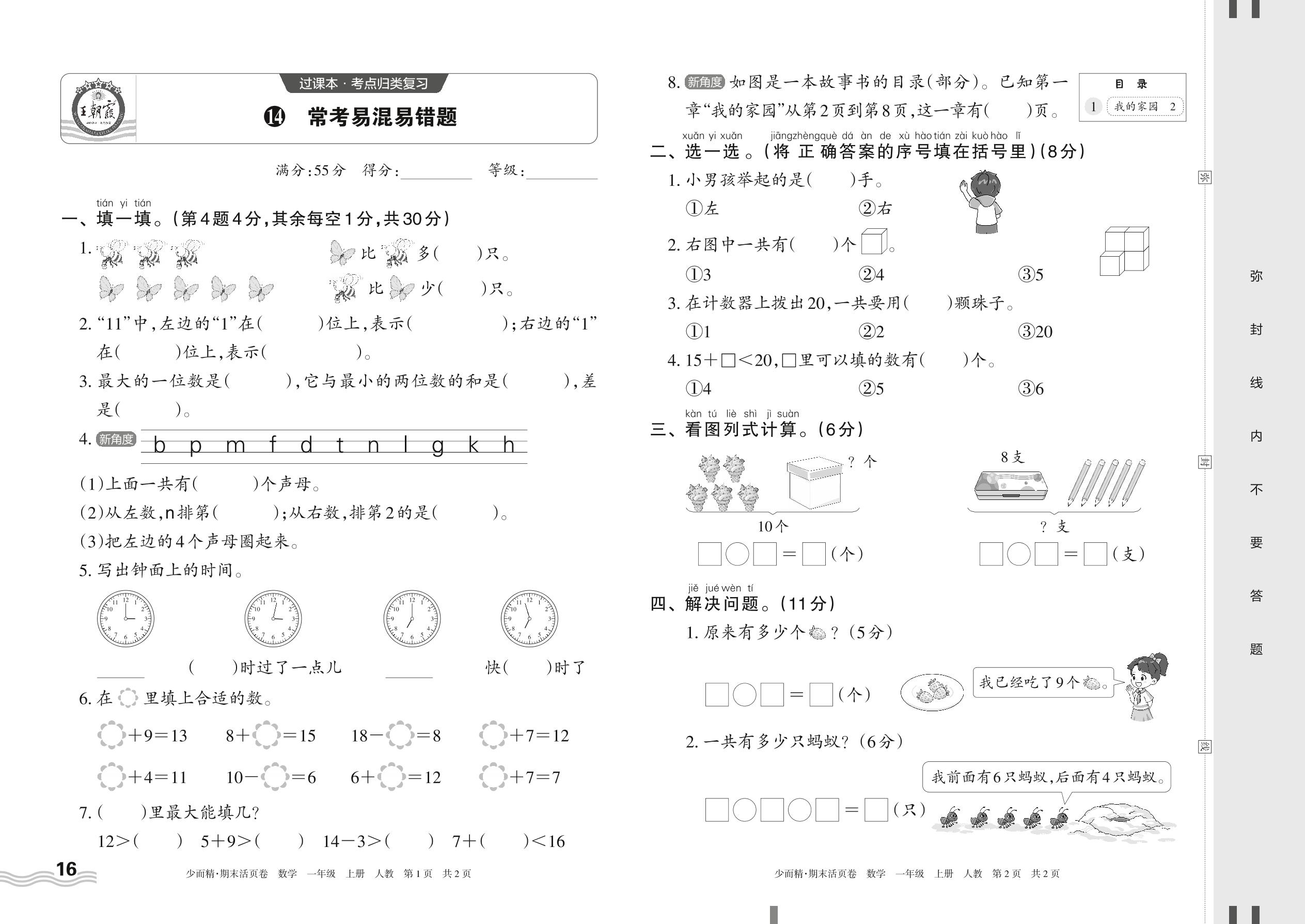 2023上册一年级数学人教版 14 常考易混易错题