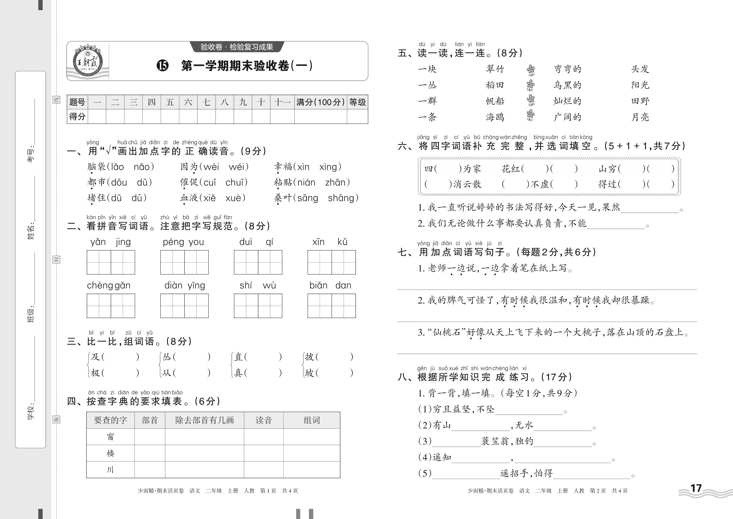 2023上册二年级语文人教版 15 第一学期期末验收卷(一)
