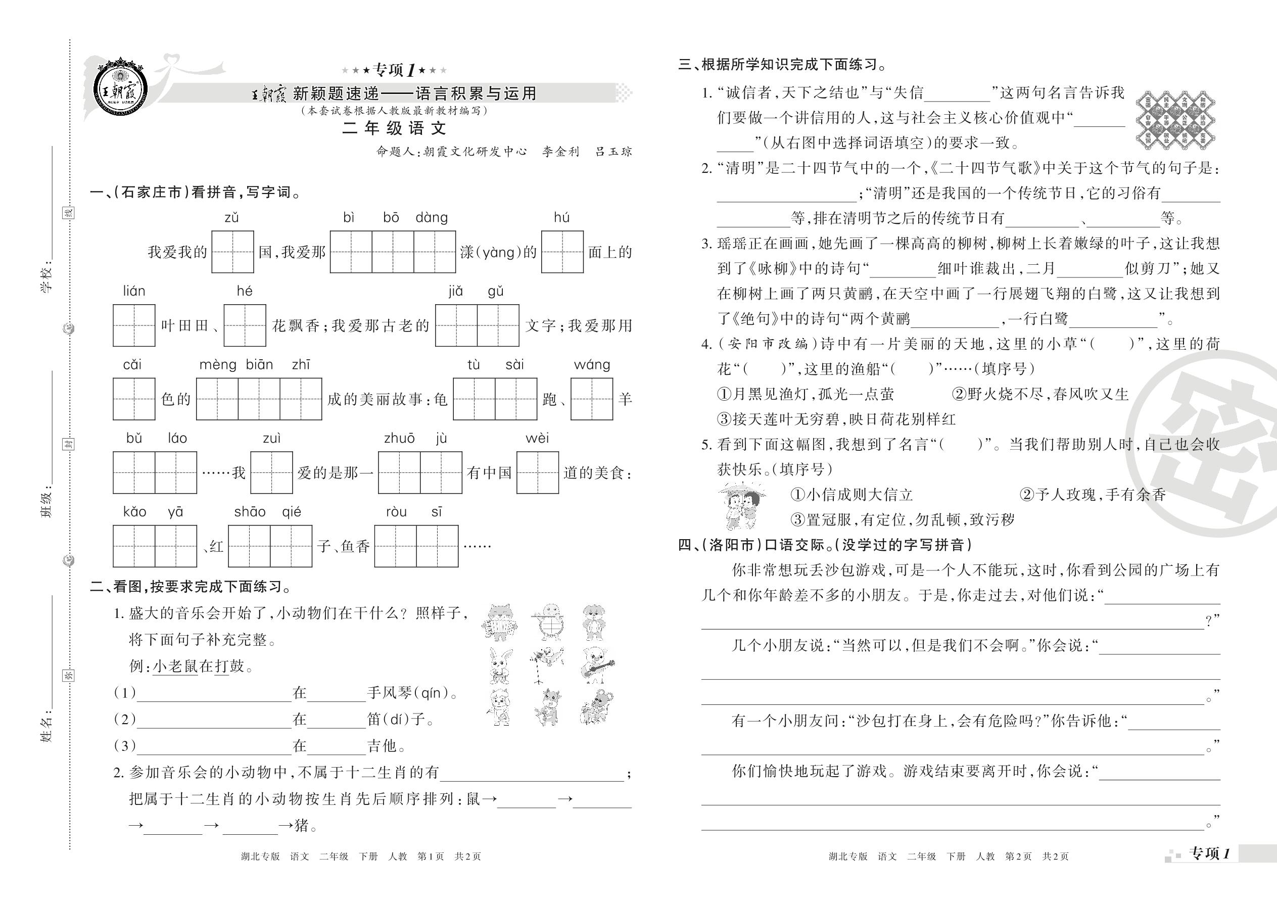 王朝霞期末专项卷——语言积累与运用、句子与口语交际真题归类复习二年级下册语文(人教版)_R21080163606【0】
