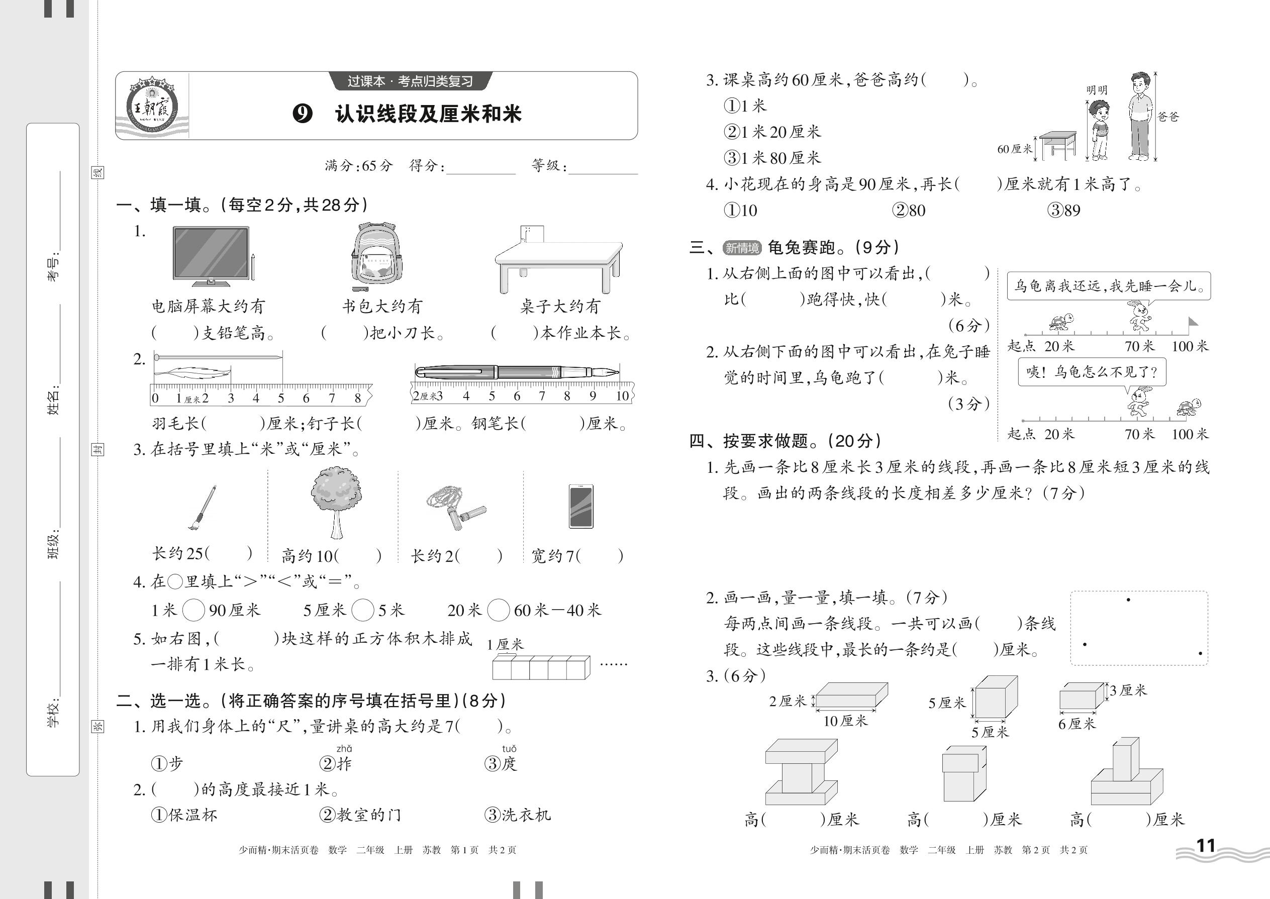 2023上册二年级数学苏教版 9 认识线段及厘米和米