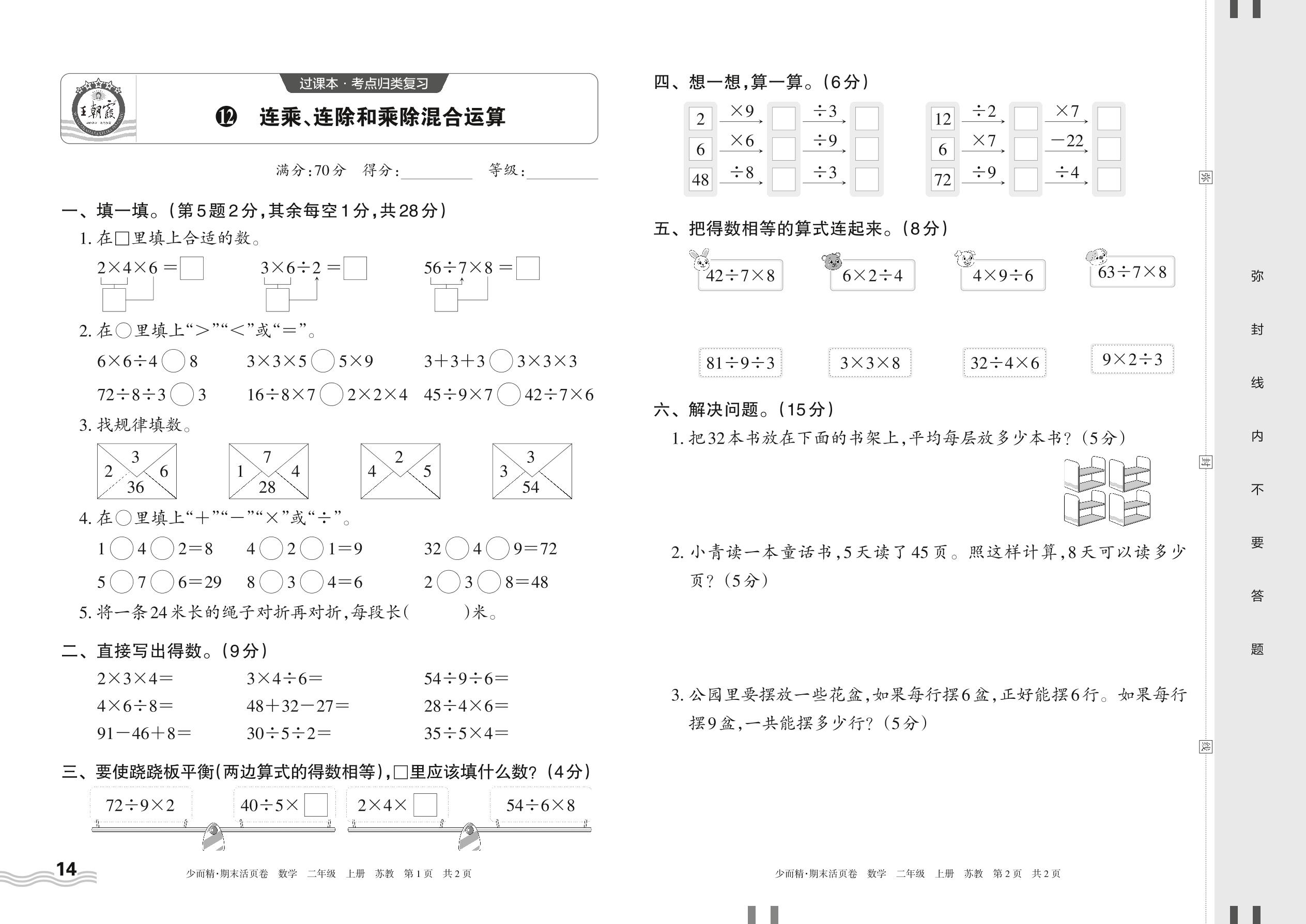 2023上册二年级数学苏教版 12 连乘、连除和乘除混合运算