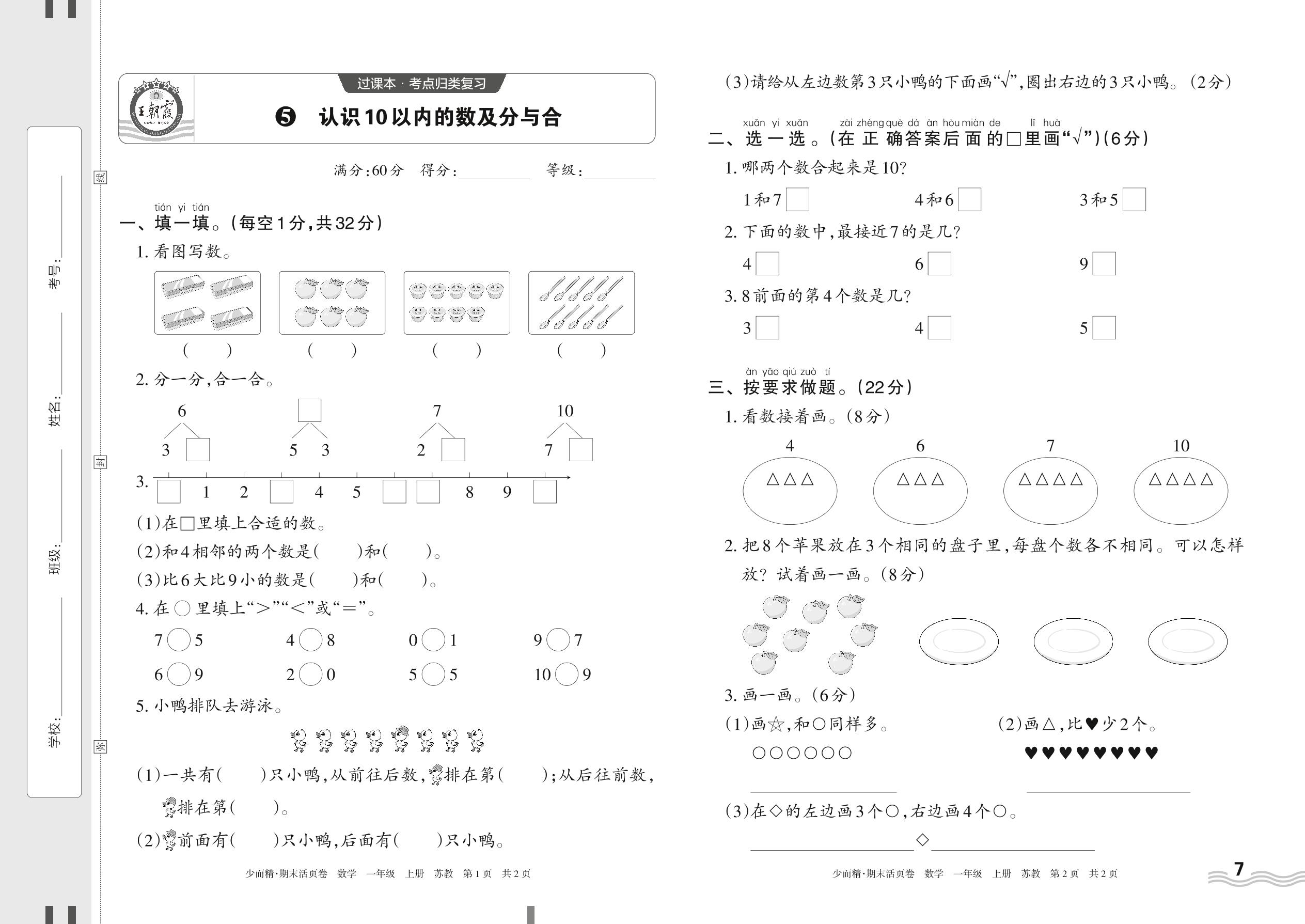 2023上册一年级数学苏教版 5 认识10以内的数及分与合