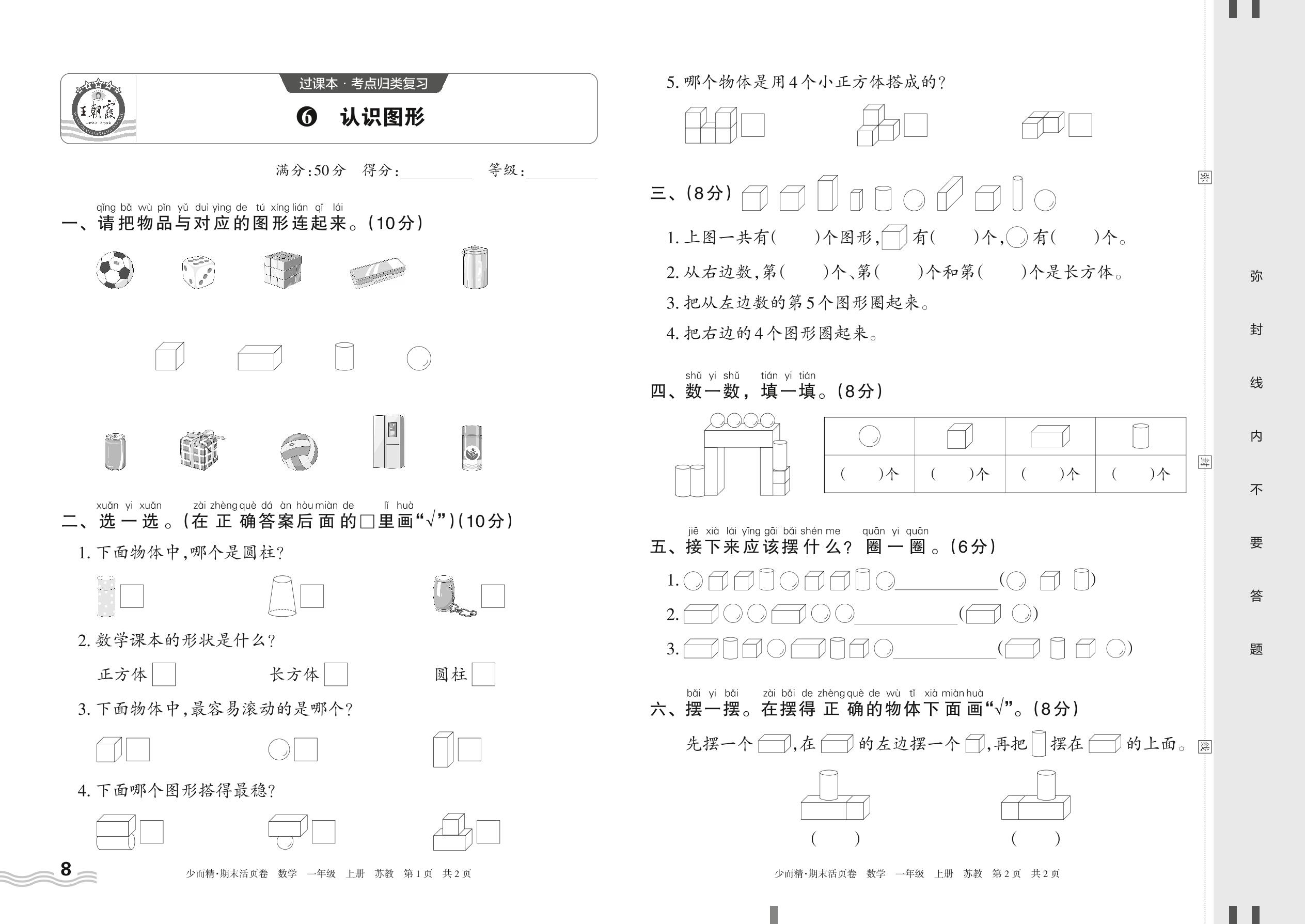 2023上册一年级数学苏教版 6 认识图形