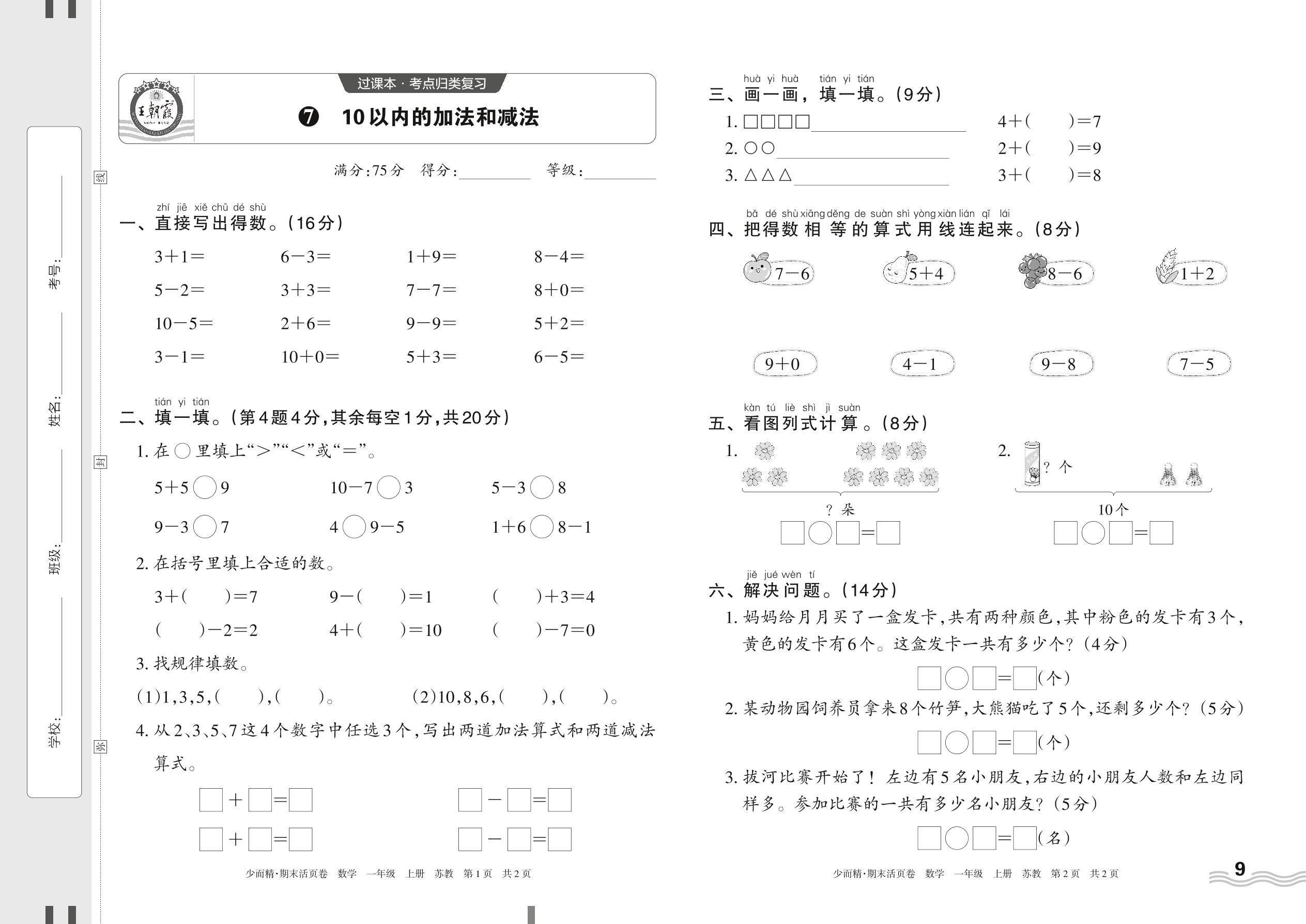 2023上册一年级数学苏教版 7 10以内的加法和减法