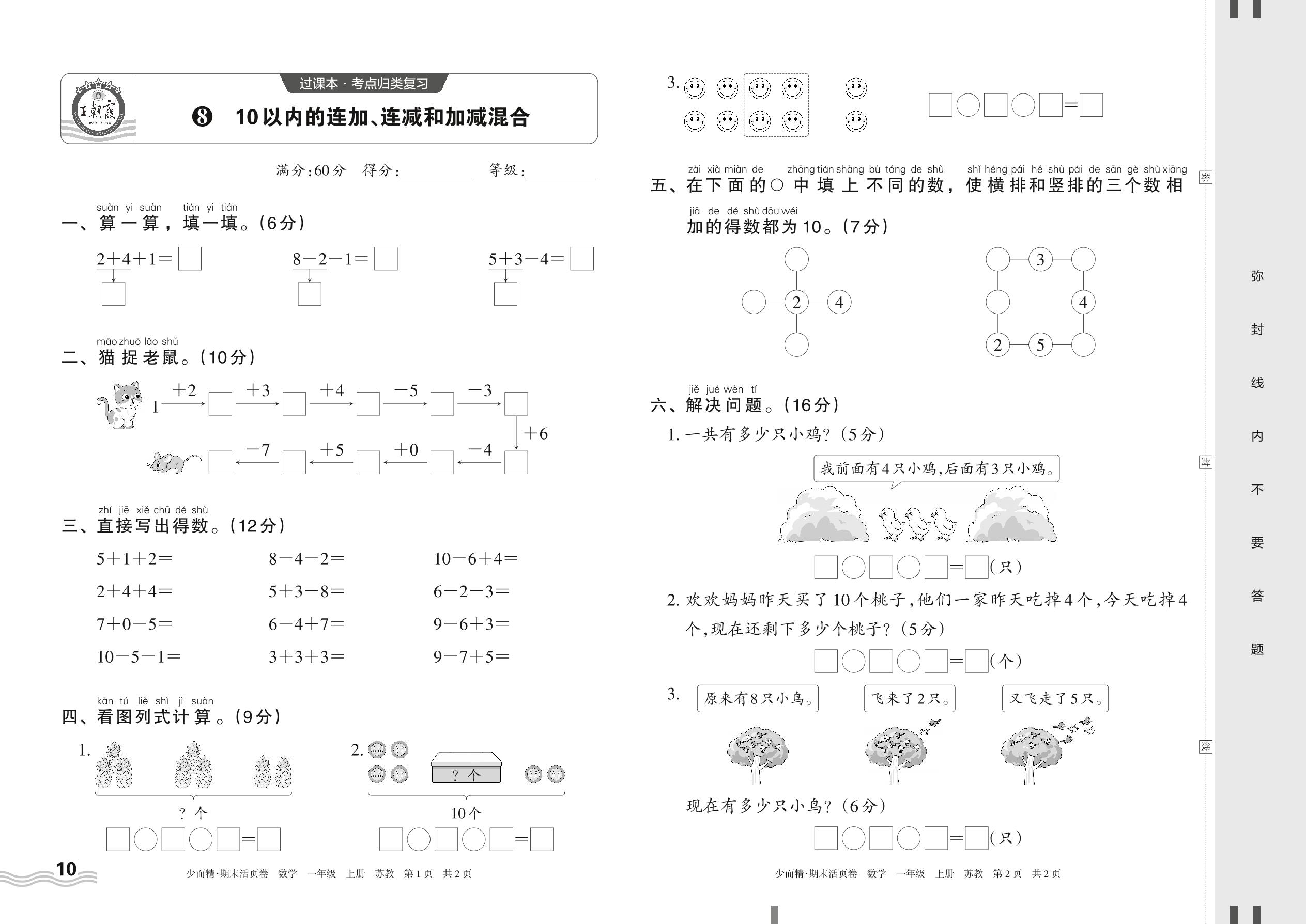 2023上册一年级数学苏教版 8 10以内的连加、连减和加减混合