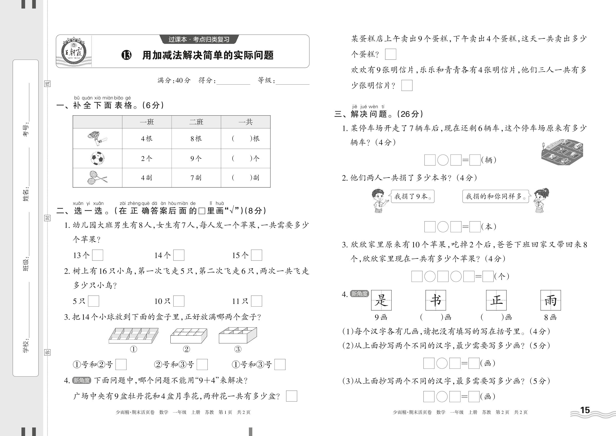 2023上册一年级数学苏教版 13 用加减法解决简单的实际问题