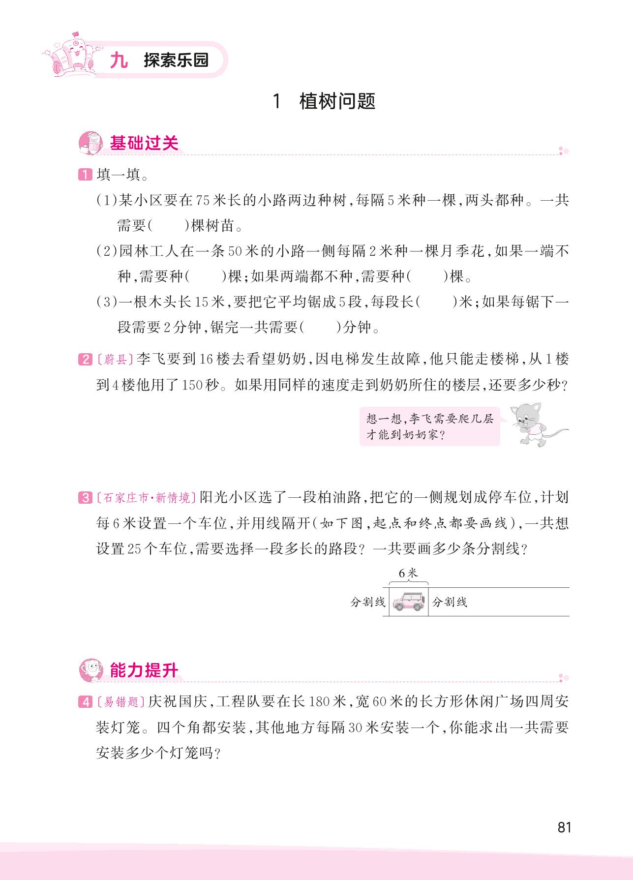 2023上册四年级数学冀教版 九 探索乐园——1 植树问题