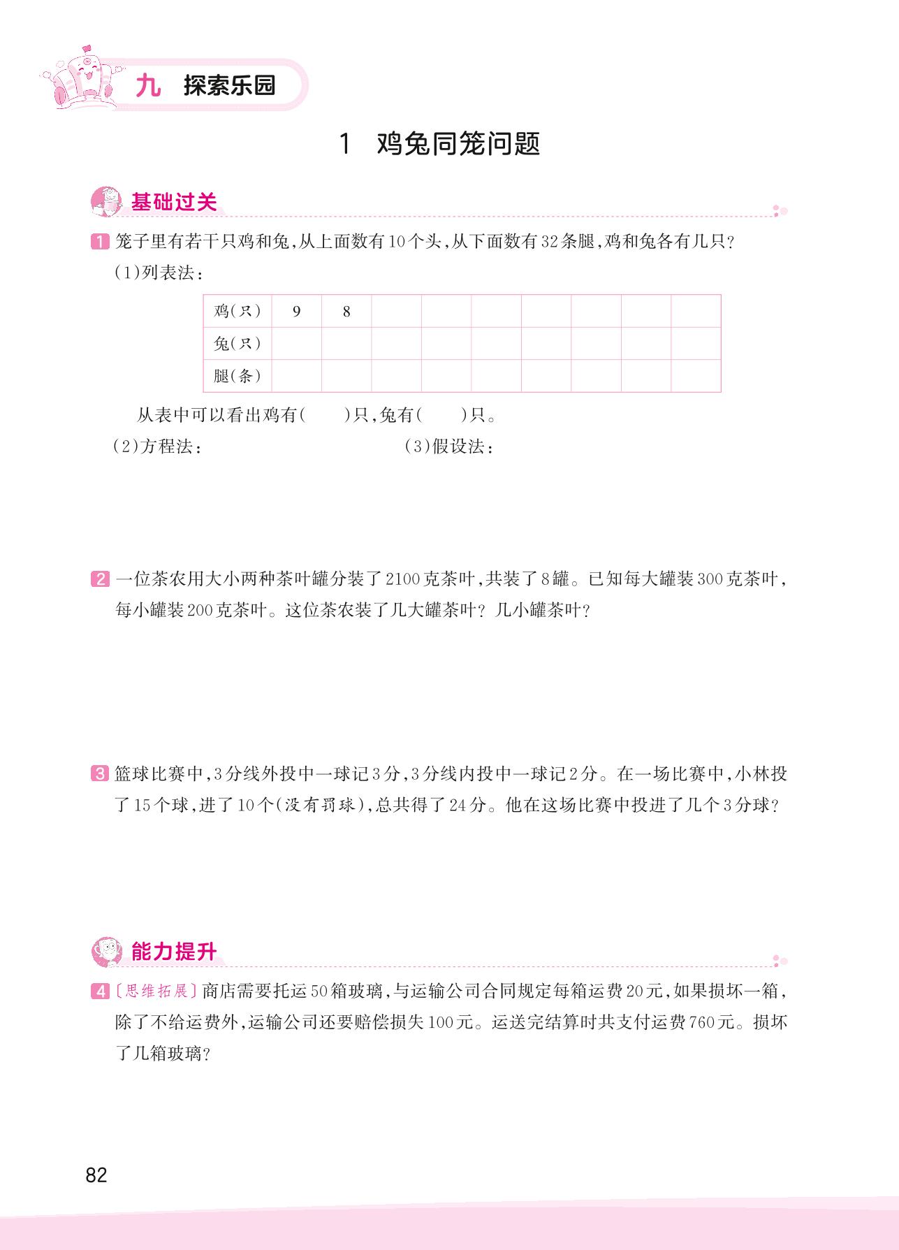 2023上册五年级数学冀教版 九 探索乐园——1 鸡兔同笼问题