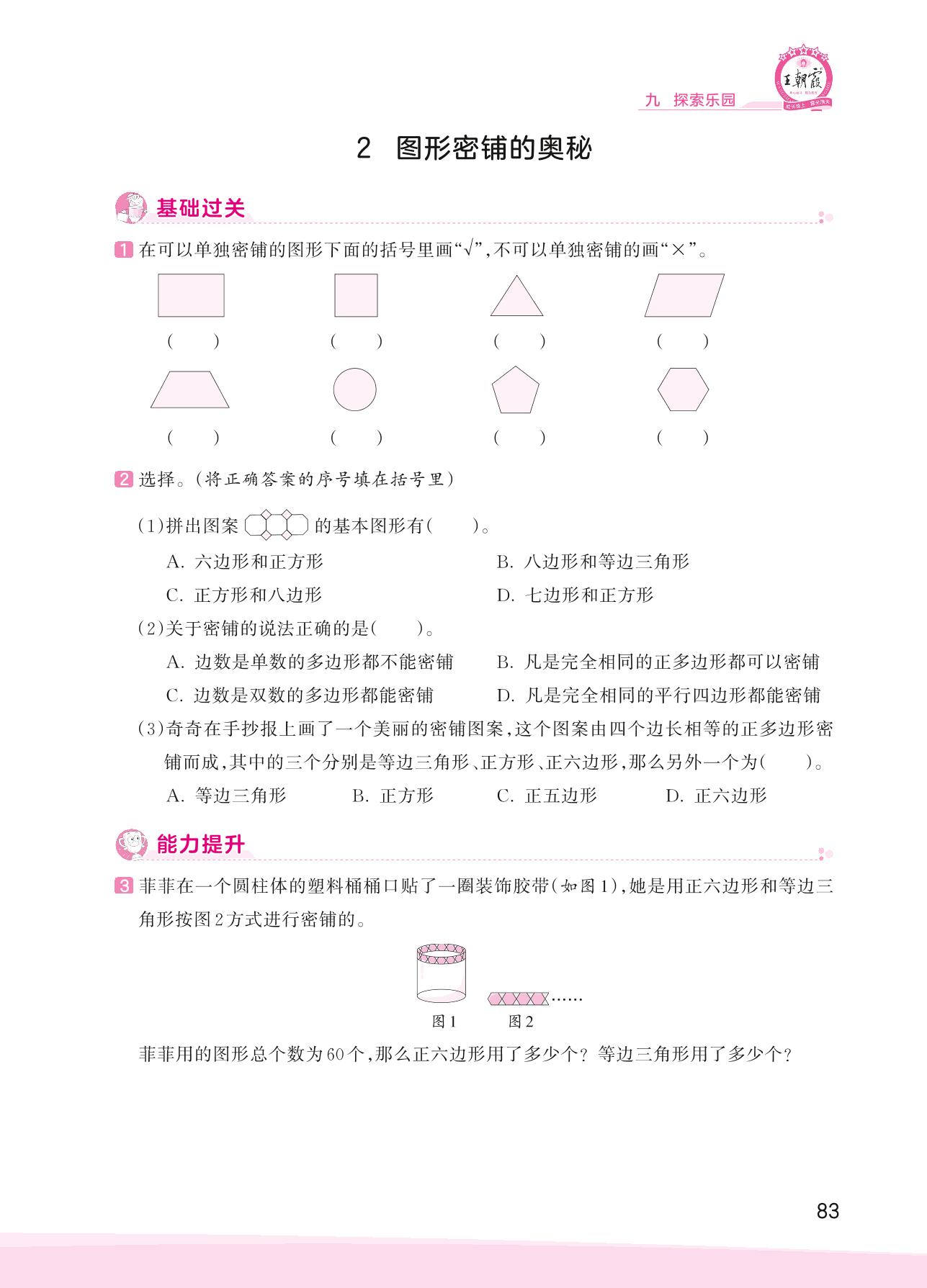 2023上册五年级数学冀教版 九 探索乐园——2 图形密铺的奥秘