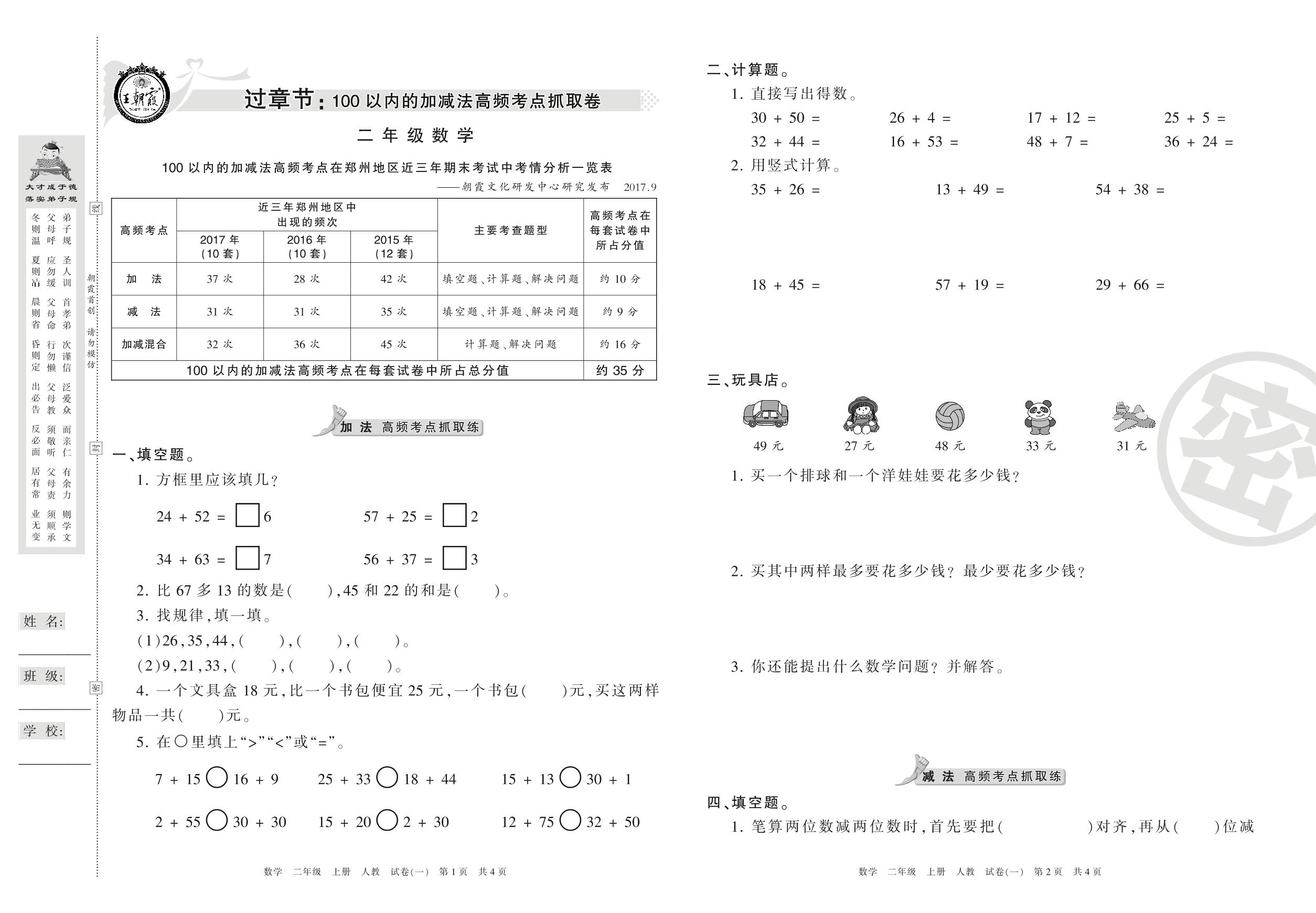 王朝霞期末过章节二年级上册数学(人教版)_R210803102134【1】