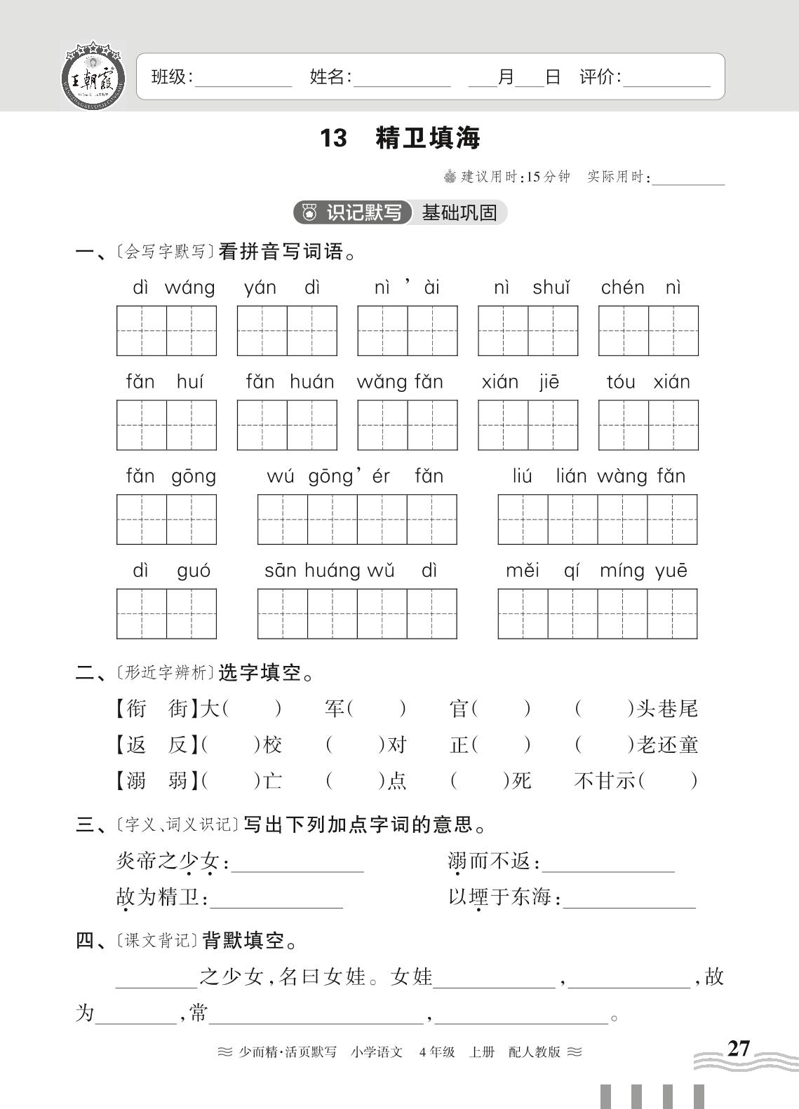 2023上册四年级语文人教版 第四单元——13 精卫填海