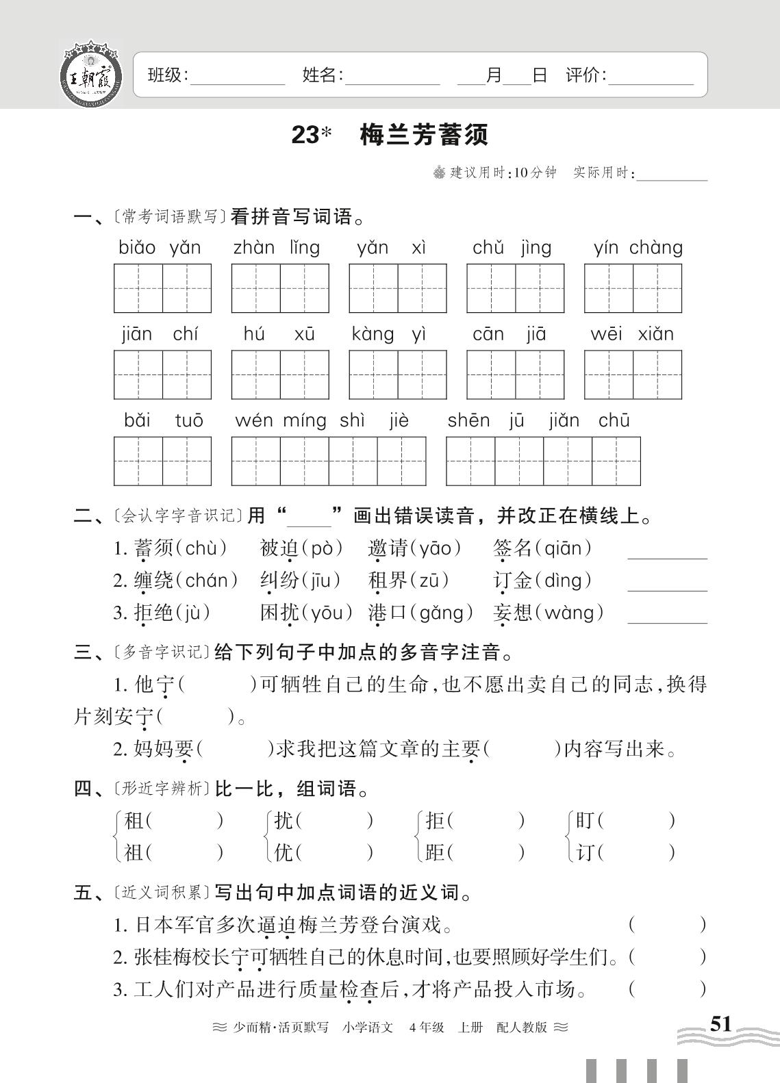 2023上册四年级语文人教版 第七单元——23 梅兰芳蓄须