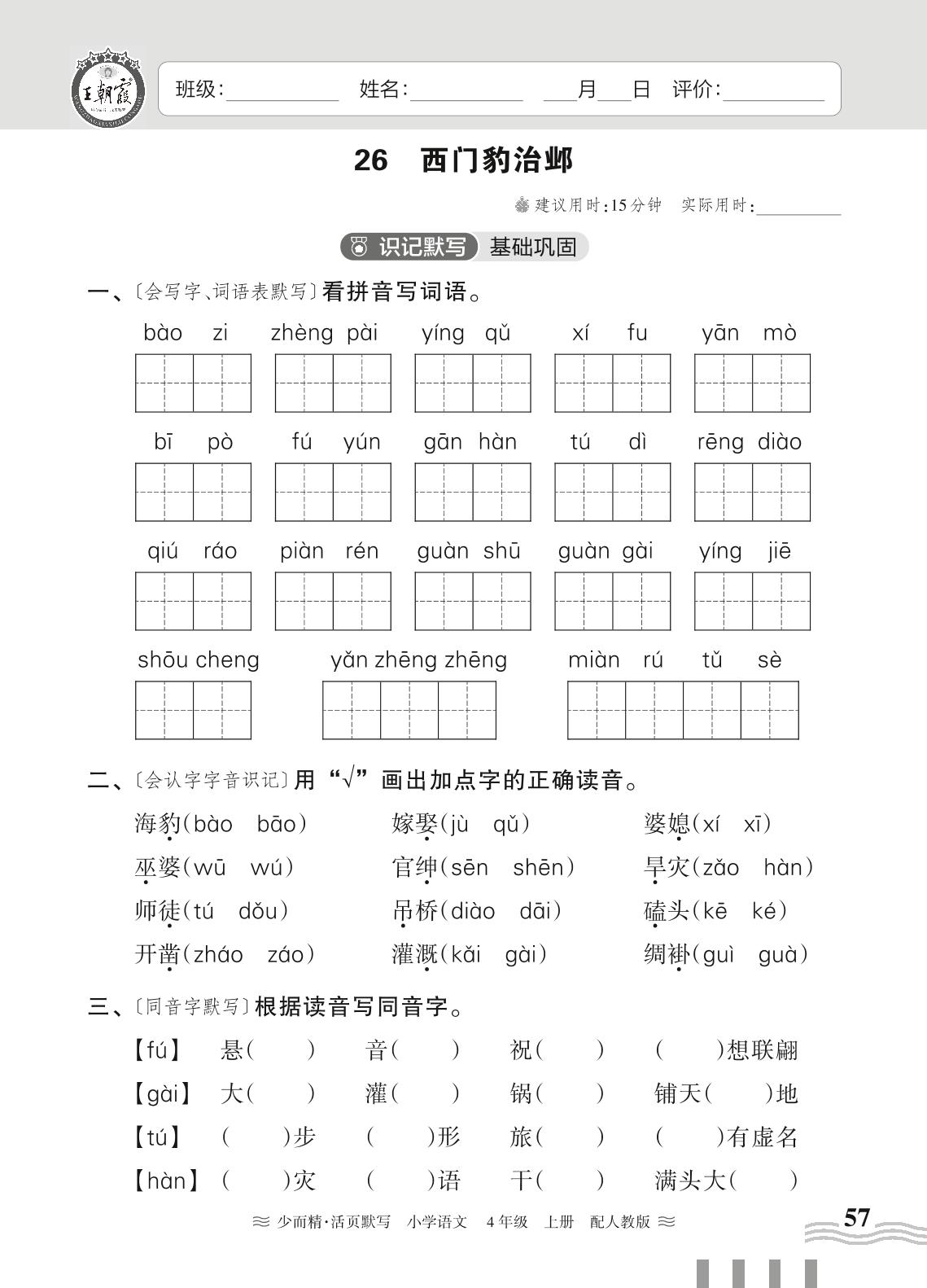2023上册四年级语文人教版 第八单元——26 西门豹治邺