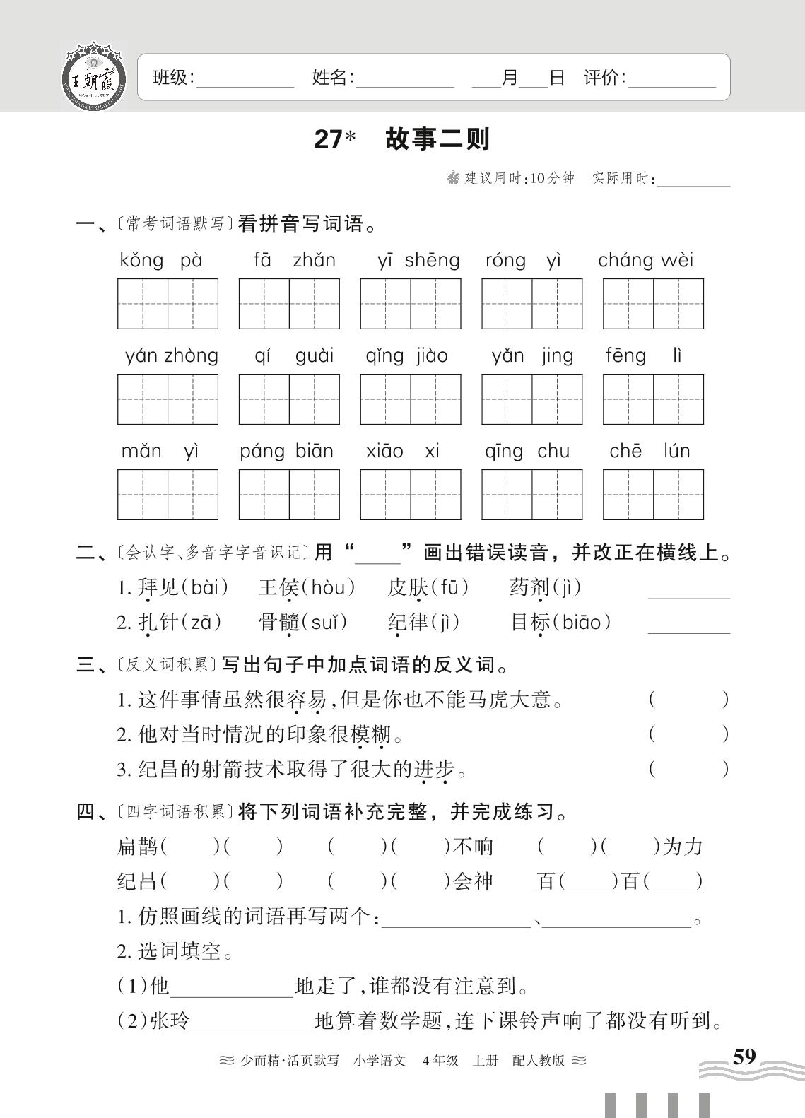 2023上册四年级语文人教版 第八单元——27 故事二则