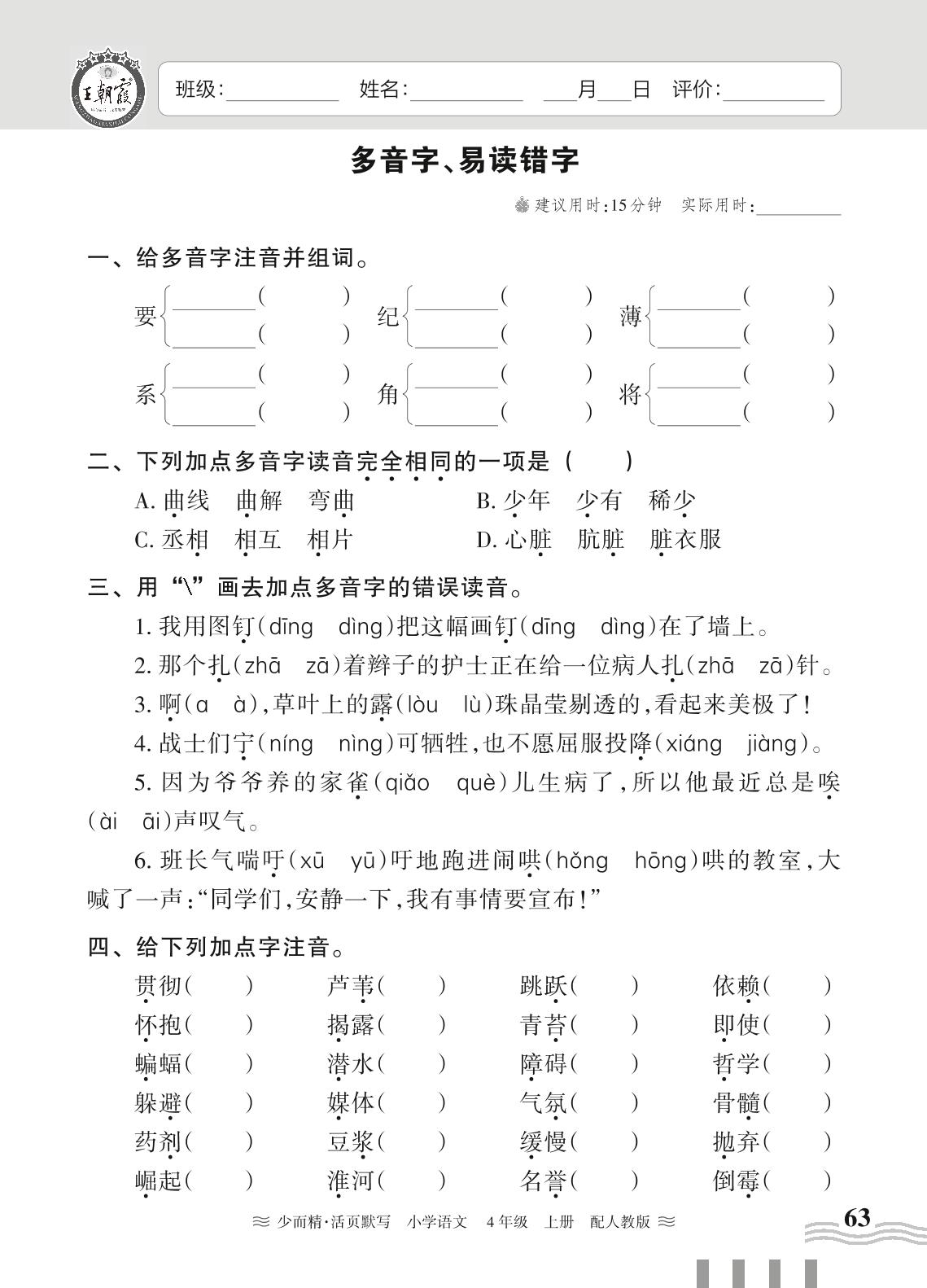 2023上册四年级语文人教版 期末专项练习——多音字、易读错字